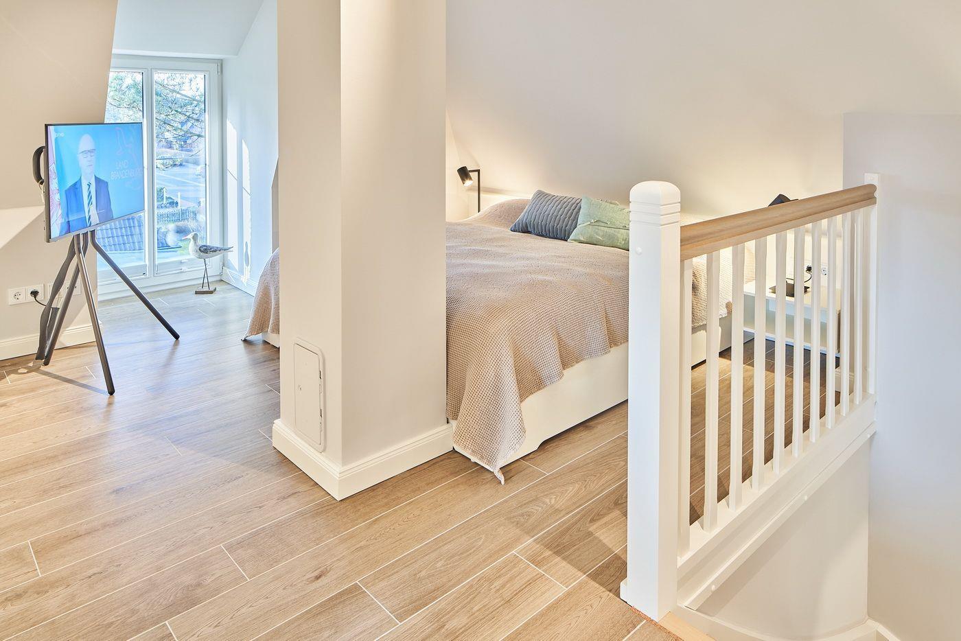Das Appartement LYKKE 4 befindet sich im Obergeschoss, eines 2021 neu erbauten Reetdachhauses am Waldrand, welches insgesamt 4 Wohneinheiten umfasst. Sie suchen einen Ort an dem Sie gemeinsam Urlaub machen können und doch jeder seinen Bereich hat?! Hier haben Sie den perfekten Ort gefunden! Das angrenzende Wäldchen führt Sie auf direktem Wege mitten ins Zentrum des Ortsteils Bad, in dem Sie neben vielen Restaurants und Einkaufsmöglichkeiten auch die Dünentherme vorfinden. Das Appartement selbst überzeugt mit seinem klaren Stil und lädt durch die exklusive Ausstattung zum Verweilen ein.