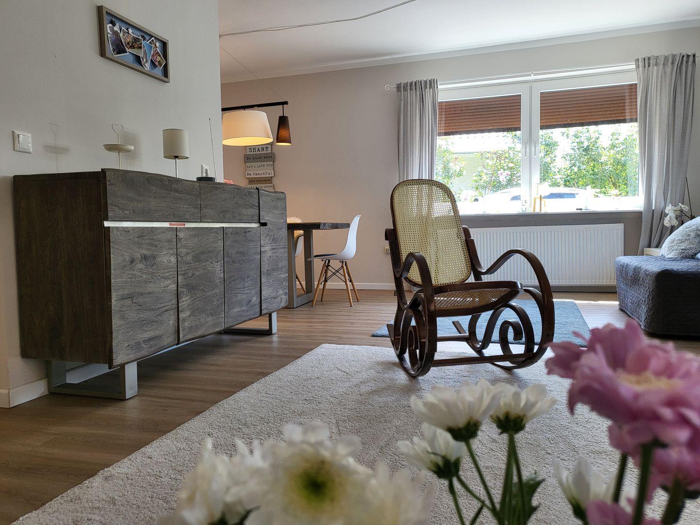 Die Wohnung 5 im Erdgeschoss ist die größte Wohnung vom Haus Windjammer. Mit 100qm ist es sehr großzügig aufgeteilt und bietet viel Platz. Wohnzimmer, Essbereich und Küche sind offen gestaltet und gehen ineinander über.