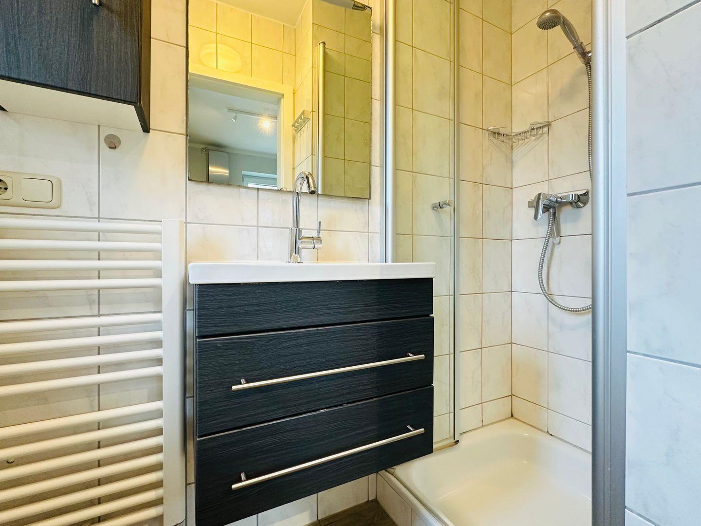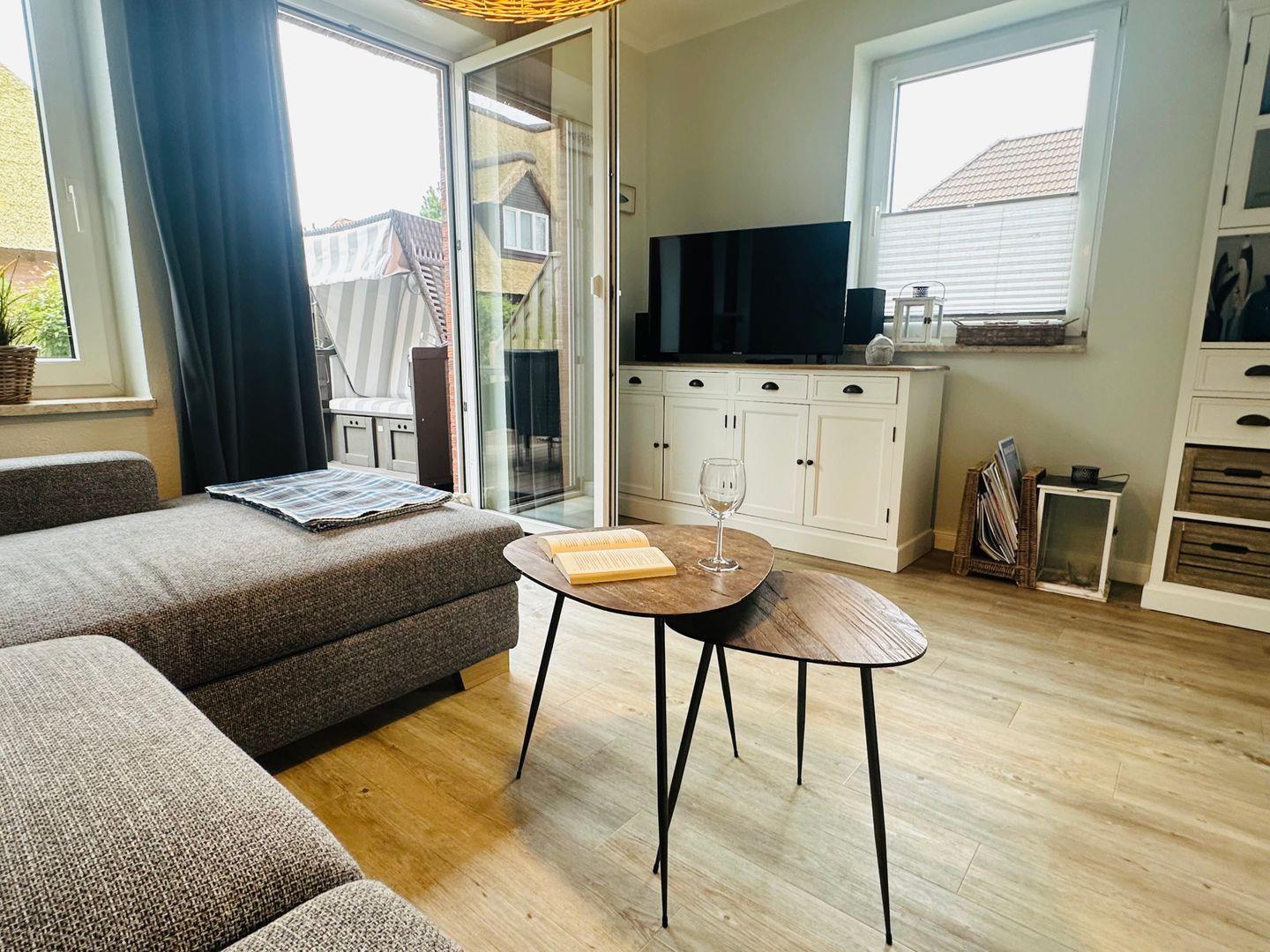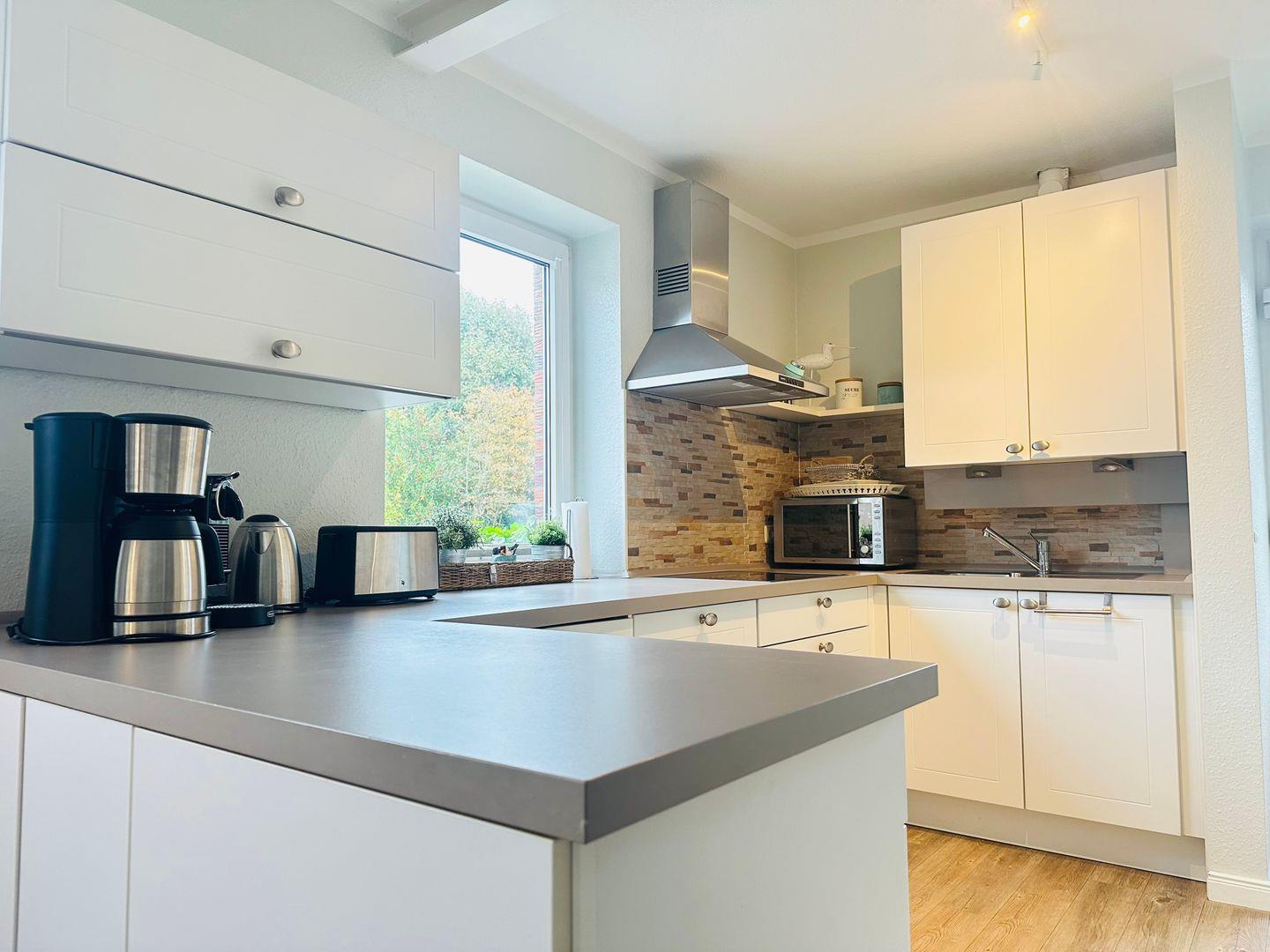 Das Haus empfängt Sie mit einer modernen maritimen Einrichtung und bietet Ihnen 3 wunderbare Zimmer. Im Erdgeschoss erwartet Sie ein stilvoller Wohnbereich, das im Jahr 2025 neu möbiliert wurde, und eine voll ausgestattete offene Küche mit Geschirrspüler und Nespresso-Maschine für müheloses Kochen und Genießen. Ein praktisches Duschbad und ein Abstellraum komplettieren diese Etage.