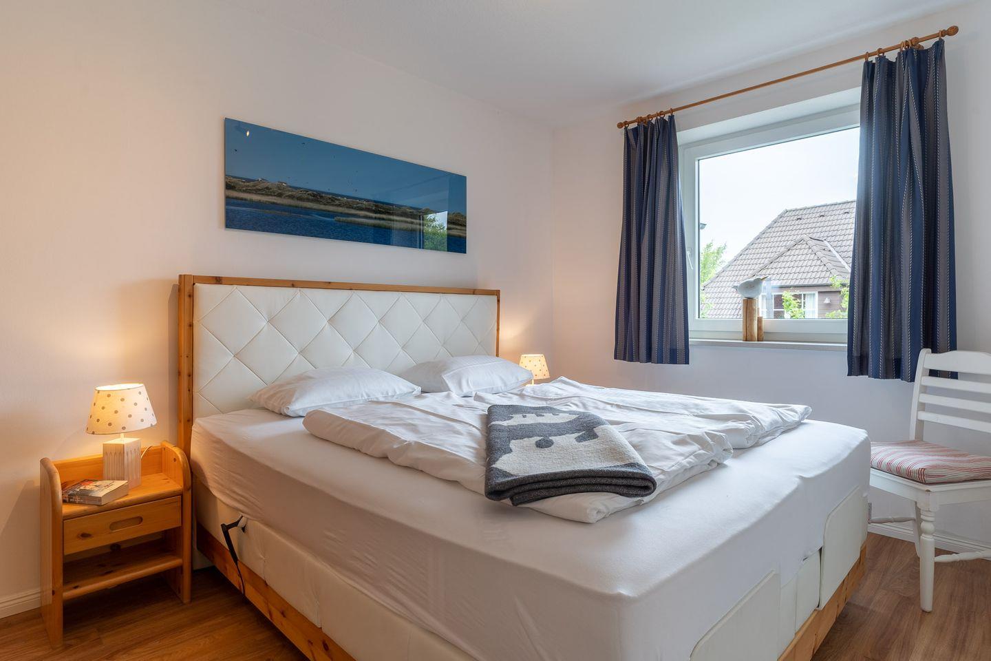 In den beiden Schlafzimmern erwarten Sie erholsame Nächte, dank eines hochwertigen Boxspringbetts und zwei Einzelbetten. Ein gepflegtes Duschbad sowie eine Münzwaschmaschine und ein -trockner stehen Ihnen ebenfalls zur Verfügung.