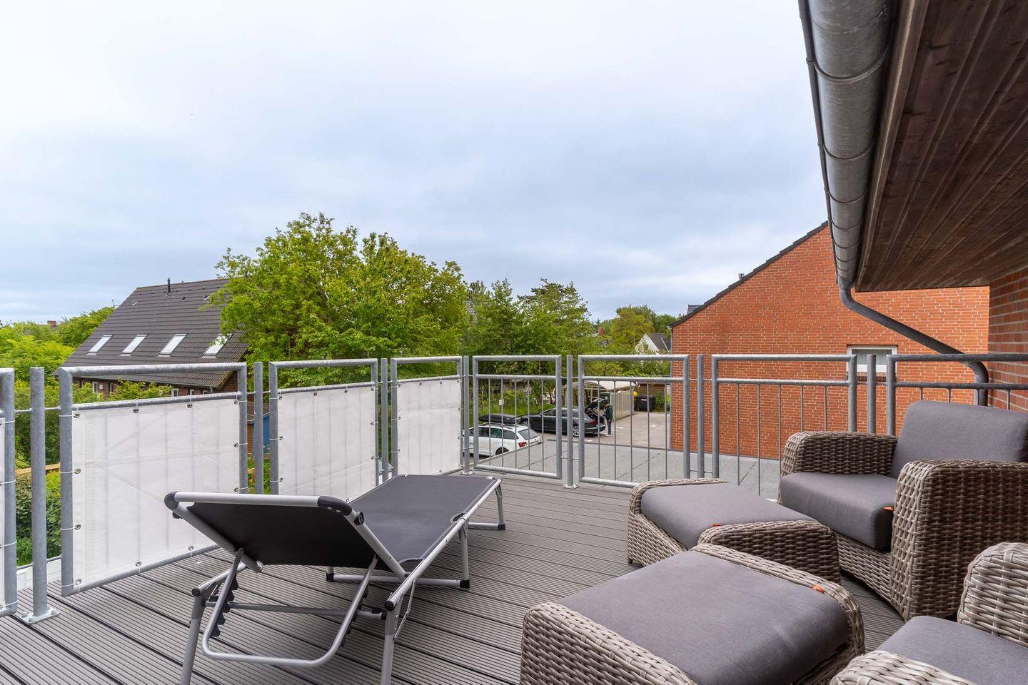 Die Sonnenterrasse ist aufgrund der geringen Durchgangshöhe eingeschränkt nutzbar.