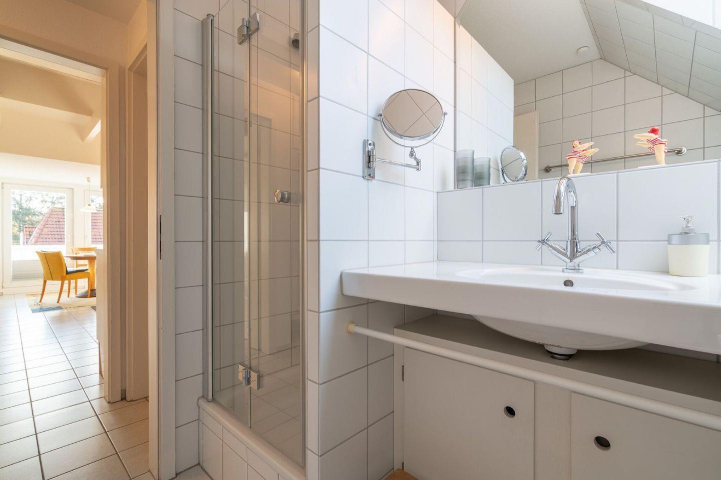 Sonnige 43-qm-Maisonette-Wohnung, ruhige Strandlage, Wohn-Küche, TV, Mikrowelle, Kühlschrank, Schlafempore (Doppelbett), Einzelbett, WC, Dusche, Balkon, Parkplatz. Gemeinschaftswaschmaschine/-trockner, Kinderhochstuhl, Babybett, WLAN. Keine Haustiere, Nichtraucher. Parkplatz 13.