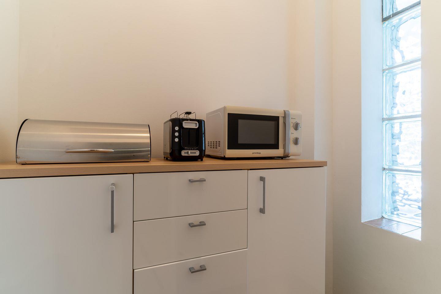 Im Hauswirtschaftsraum stehen eine Waschmaschine und ein Wäschetrockenständer zur Verfügung. Außerdem gibt es einen abschließbaren Schuppen für Ihre Fahrräder sowie einen extra gekennzeichneten PKW-Stellplatz auf dem Grundstück.