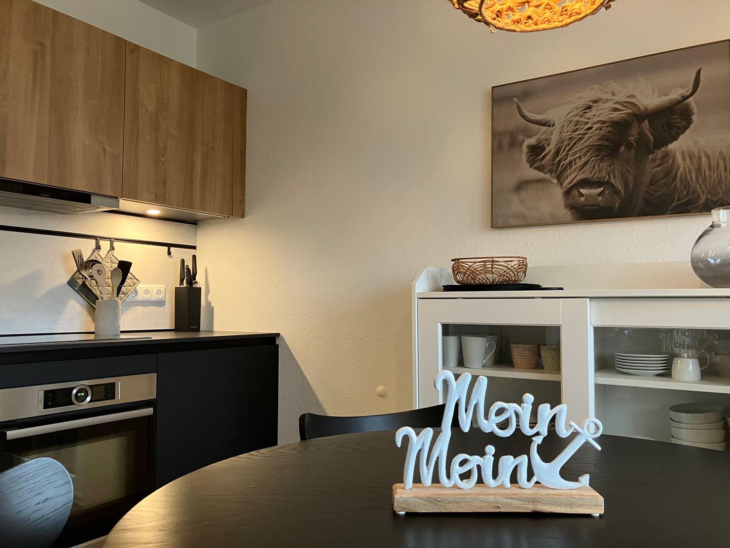 Die voll ausgestattete Küchenzeile wurde 2024 neu eingebaut und ist mit Induktionsherd, Backofen mit integrierter Mikrowelle und Geschirrspüler ausgestattet. Daneben gibt es einen Essbereich sowie eine gemütliche Sitzecke, die zum Entspannen einlädt. Fernseher und WLAN gehören ebenfalls zur Ausstattung.