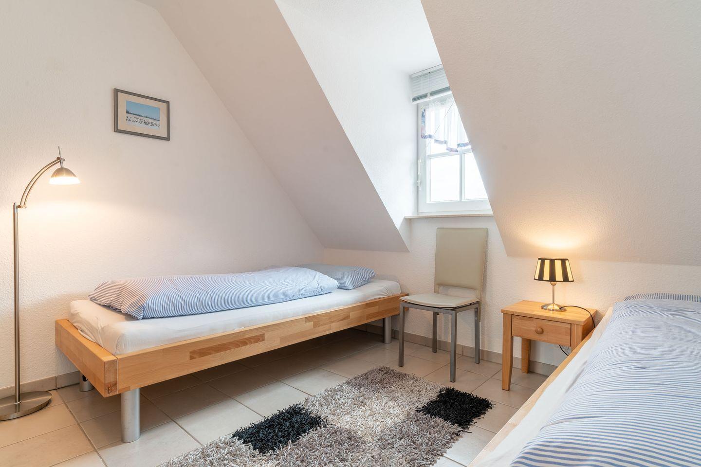 In den 2 Schlafzimmern mit kuscheligen Betten verbringen Sie erholsame Nächte. Ein Duschbad steht Ihnen zur Verfügung. Ein Abstellraum mit Bügeleisen und -brett sowie eine Waschmaschine sind vorhanden.