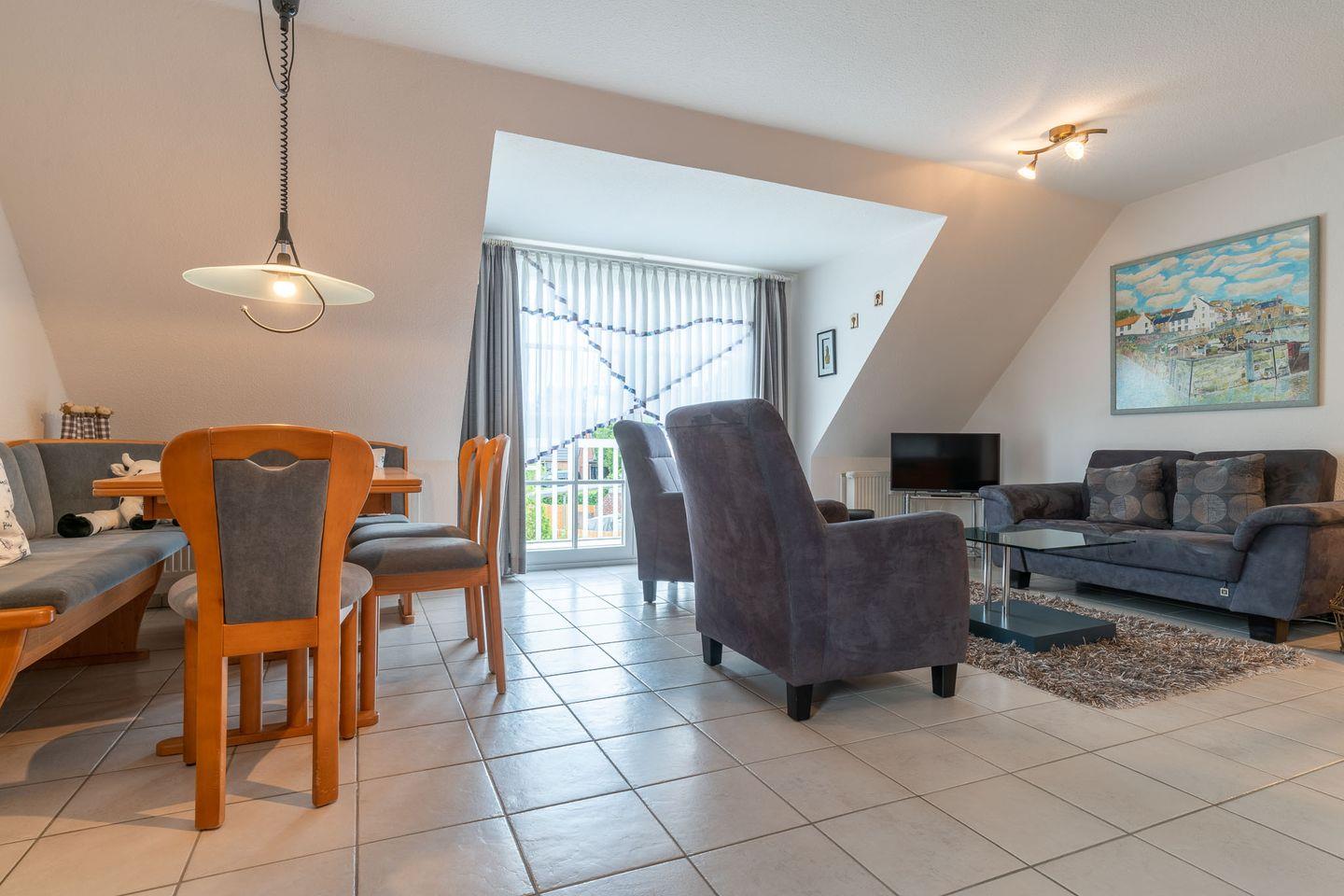 Ferienwohnung Polarstern - Diese Wohnung liegt in ruhiger Lage, in der Nähe des Böhler Leuchtturms. Der Seedeich mit Strandübergang ist nur 5 Gehminuten entfernt, und in 3 Gehminuten erreichen Sie den Kinderspielplatz.