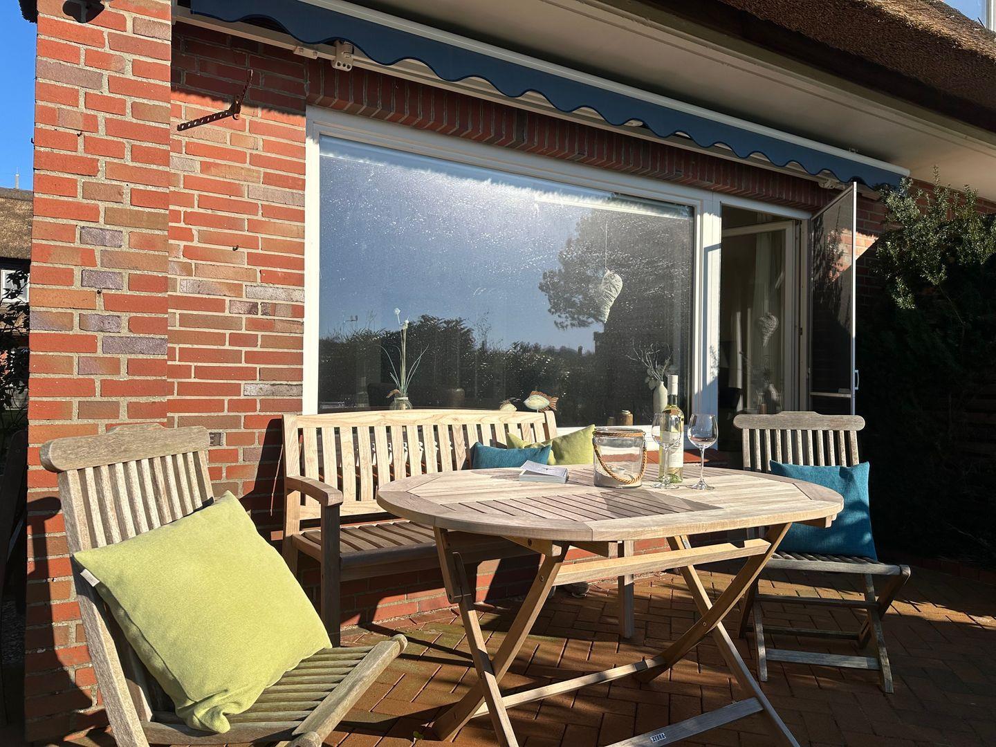 Ruhige Reetdach-Reihenhausanlage im idyllischen Ortsteil Dorf, direkt hinter den Dünen gelegen. Nichtraucher! Erdgeschoss: Flur, separate Einbauküche mit Geschirrspüler, Herd mit Backofen, Wohnbereich mit Essecke. Erstes Obergeschoss: 2 Schlafzimmer (1 Doppelbett, 2 Einzelbetten), Duschbad/WC. Dachgeschoss: Lesebereich, Terrasse mit Gartenmöbeln, Garagenstellplatz.