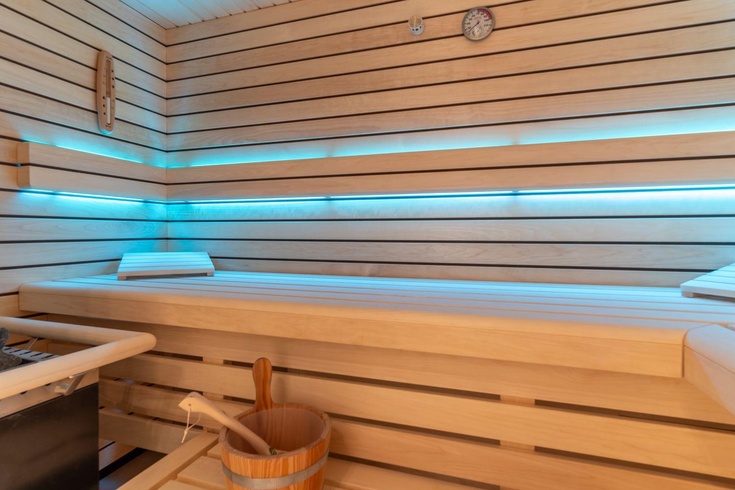 Das volle Wohlfühlprogramm erwartet Sie im Untergeschoss, das sowohl durch natürliches Tageslicht, als auch durch eine Strandbilder-Beleuchtung illuminiert wird. Sie gelangen direkt in den großzügigen Entspannungsbereich mit Sauna, großer Dusche und TV.