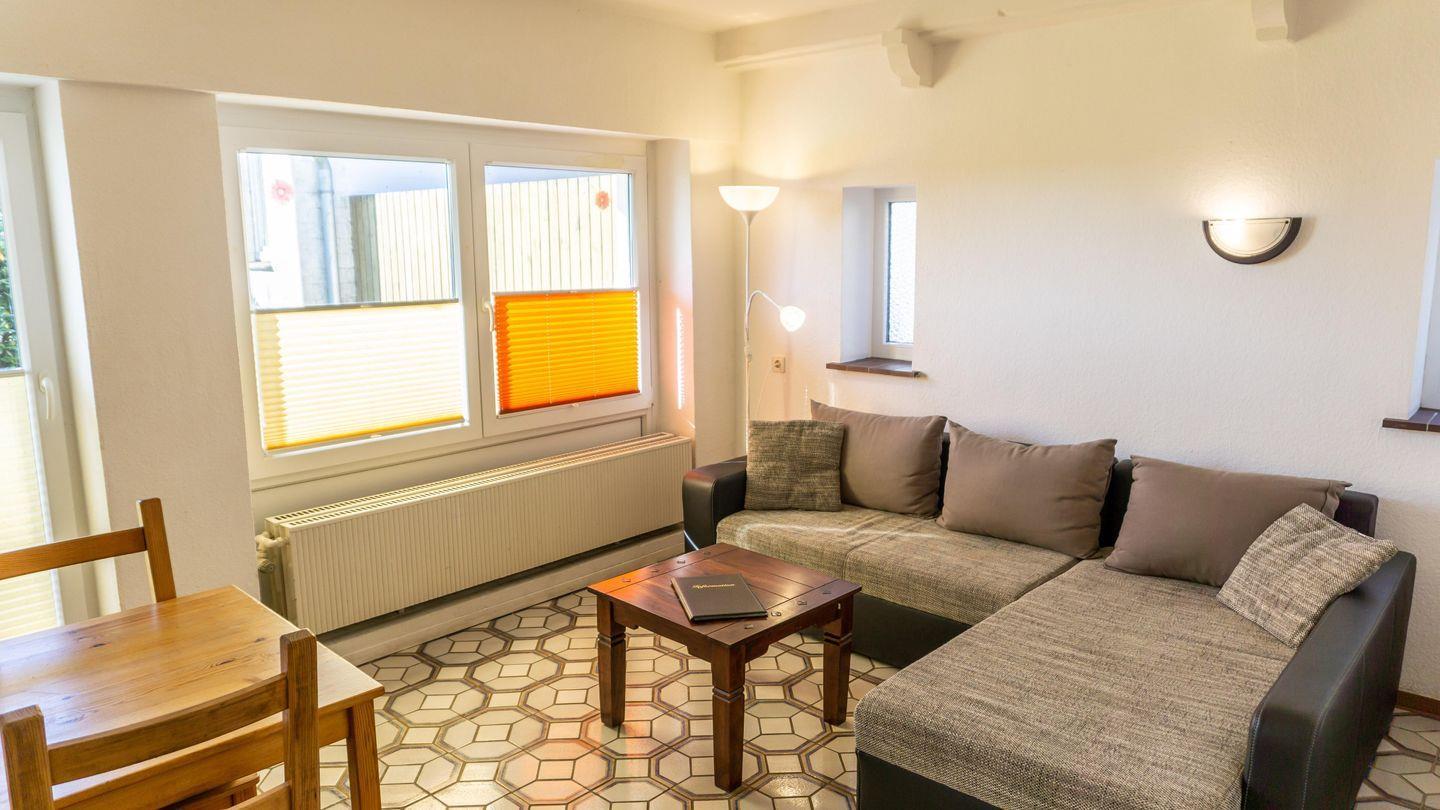 Wohnbereich: Schlafsofa, Essbereich, SAT-TV