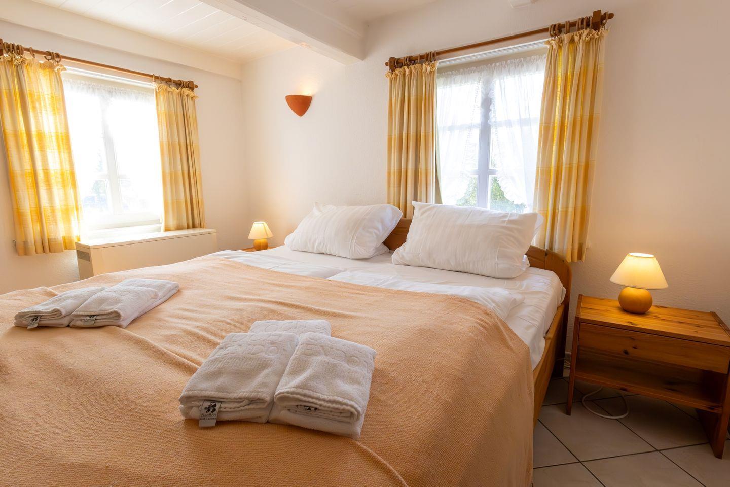 Das Schlafzimmer verfügt über Verdunklungsmöglichkeiten, zudem sind an fast allen Fenstern Insektenschutzgitter angebracht.