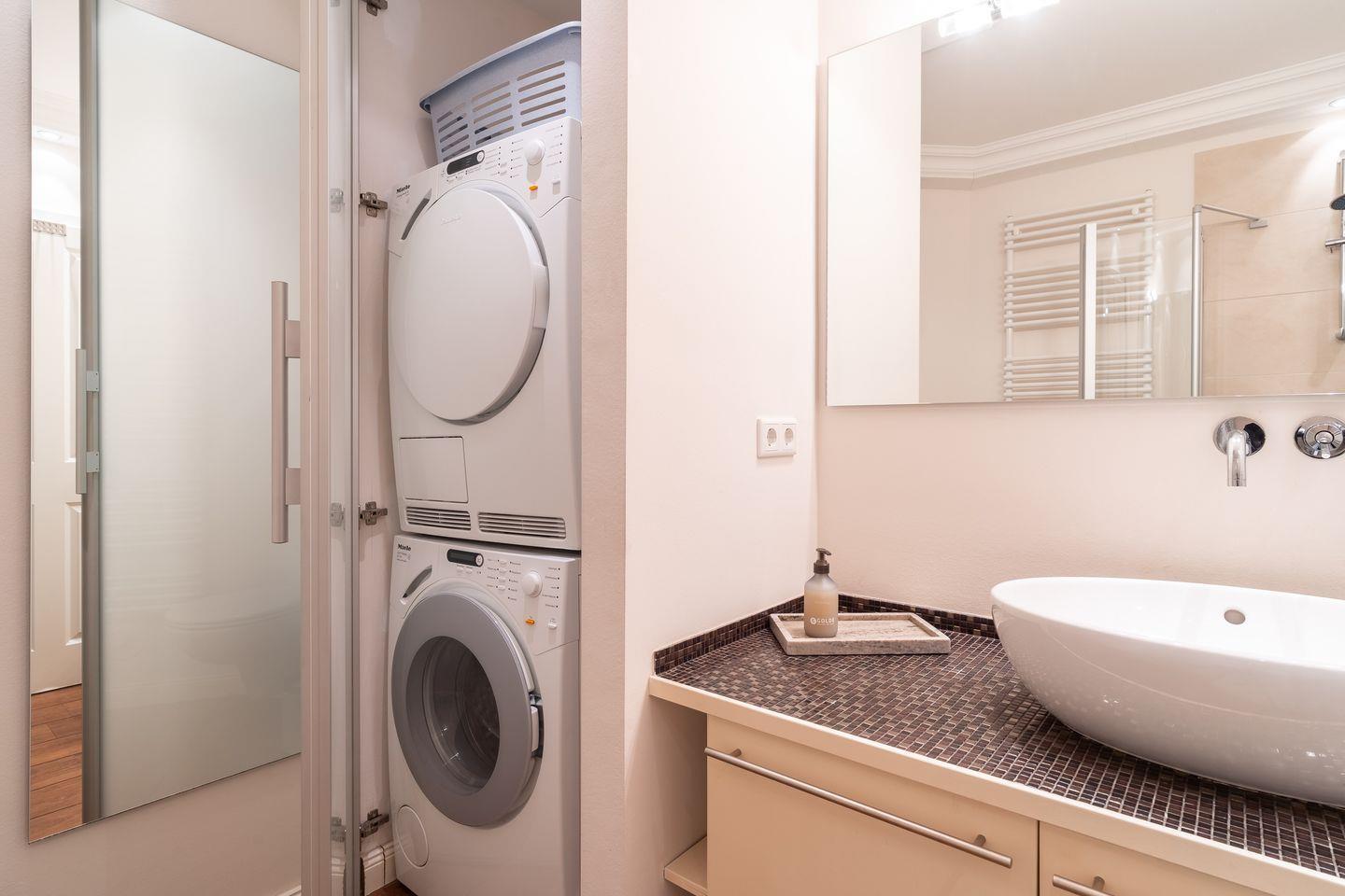 Für zusätzlichen Komfort stehen Ihnen ein Trockner, eine Waschmaschine, ein Bügeleisen und ein Bügelbrett zur Verfügung – Sie müssen sich keine Sorgen machen, wenn ein kleines Missgeschick passiert oder Sie frische Kleidung benötigen.