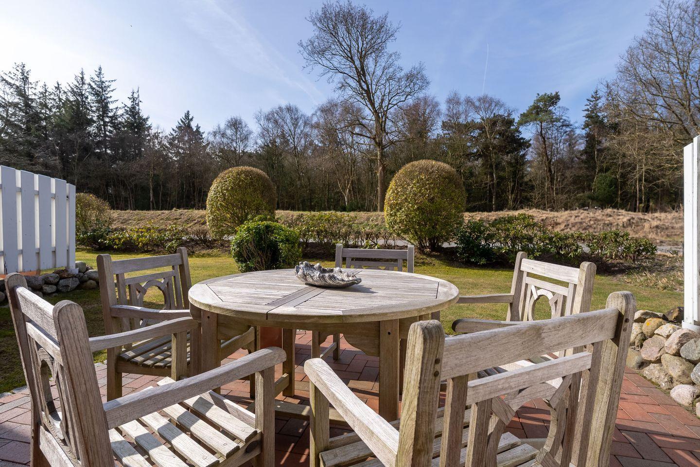 Von hier aus gelangen Sie auch auf die privaten Terrassen, wo wunderschöne Gartenmöbel und ein Strandkorb bereitstehen. Genießen Sie die frische Luft und die entspannende Atmosphäre – perfekt, um mit einem guten Buch zu entspannen und wertvolle Erinnerungen zu schaffen.