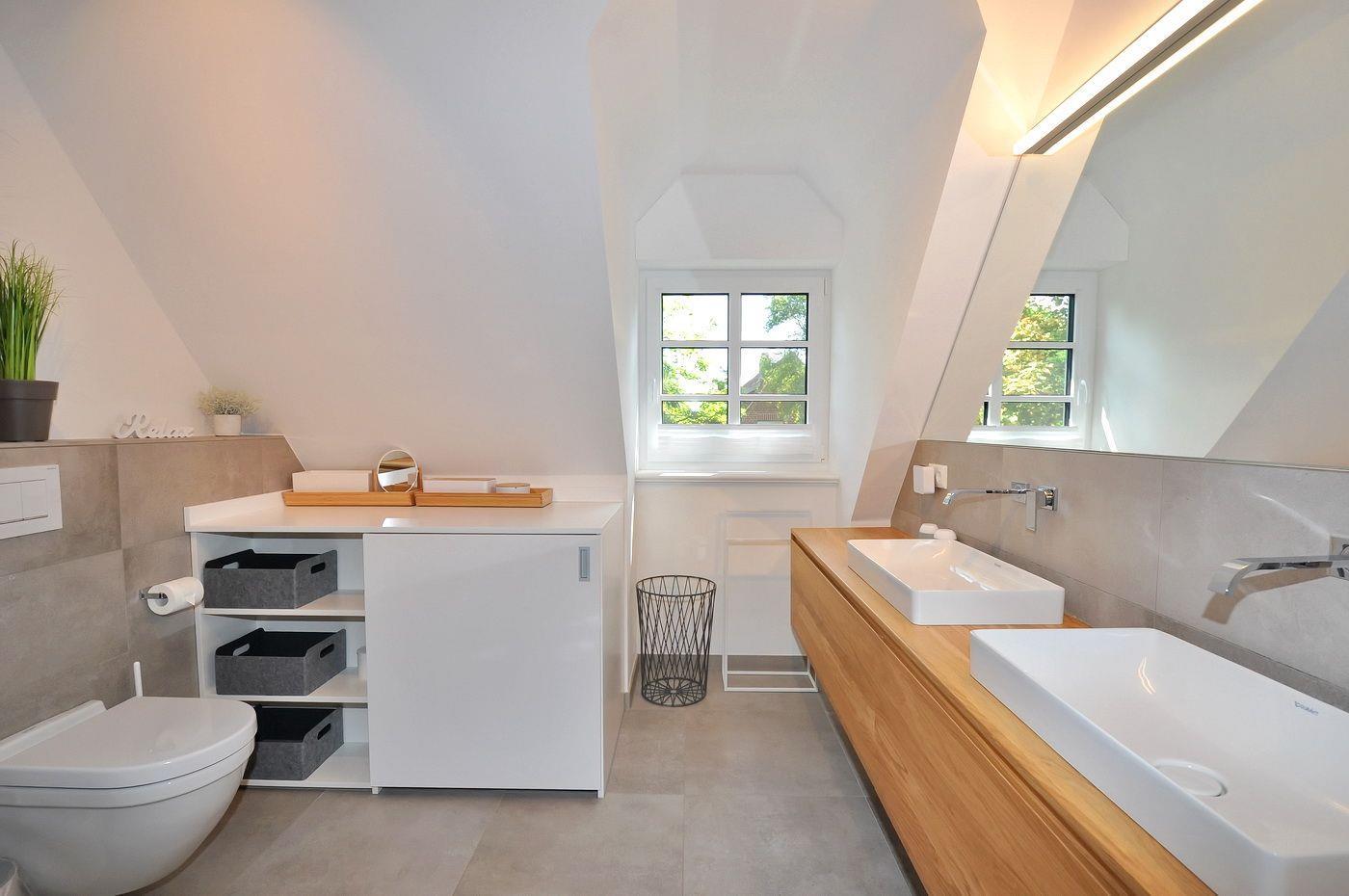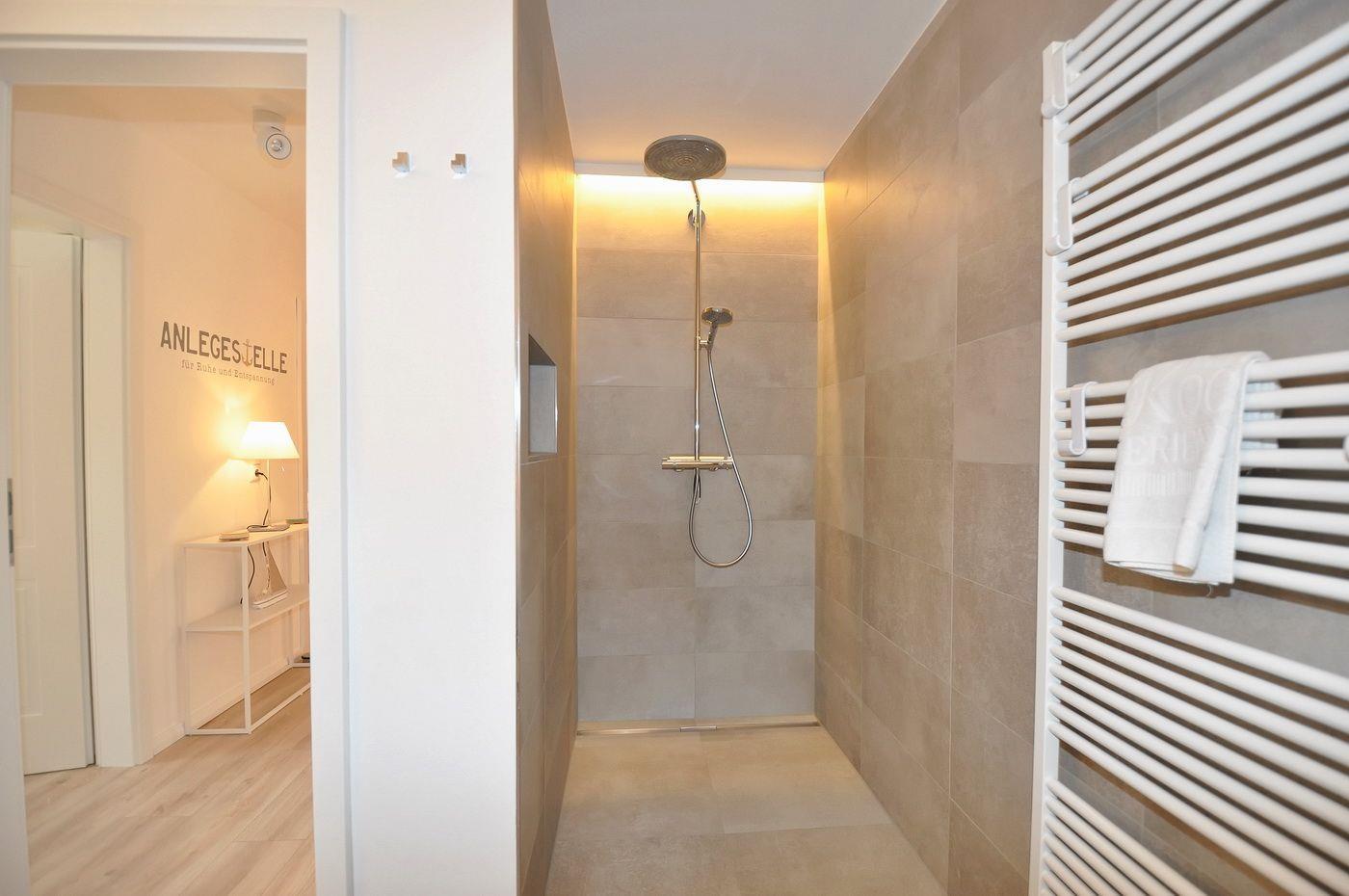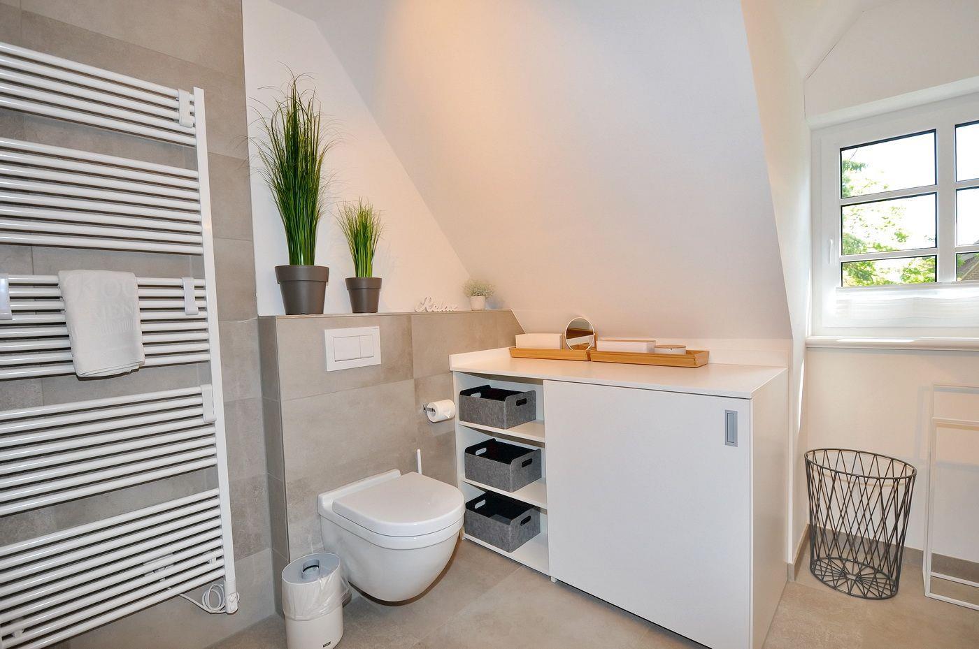 Obergeschoss: 2 Schlafzimmer mit Boxspringbett (je 180 x 200 cm - durchgehender Topper) und TV, ein Duschbad / WC mit Doppelwaschtisch, eine separate Sauna