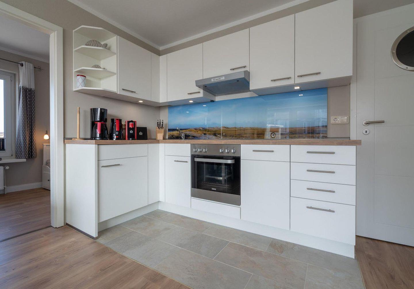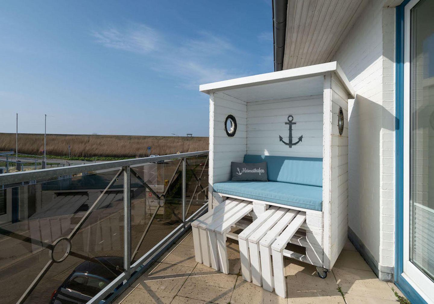 Das modernisierte Appartement bietet Platz für 4-6 Personen auf ca. 62qm und hat einen wunderbaren Ausblick auf den Deich mit der Strandüberfahrt. Der Wohnbereich der Ferienwohnung verfügt über eine Couch mit Couchtisch sowie zwei Sesseln. Des weiteren ist ein großer Esstisch mit 6 Stühlen vorhanden. Vom Wohnbereich gelangen Sie auf den Balkon der ebenfalls mit einem Tisch und 6 Stühlen ausgestattet ist. Die Küchenzeile verfügt über einen Herd mit Ceranfeld und Backofen, Dunstabzugshaube, Geschirr, Spülmaschine, Kaffeemaschine, Kochtöpfe, Kühlschrank, Toaster und einem Wasserkocher.