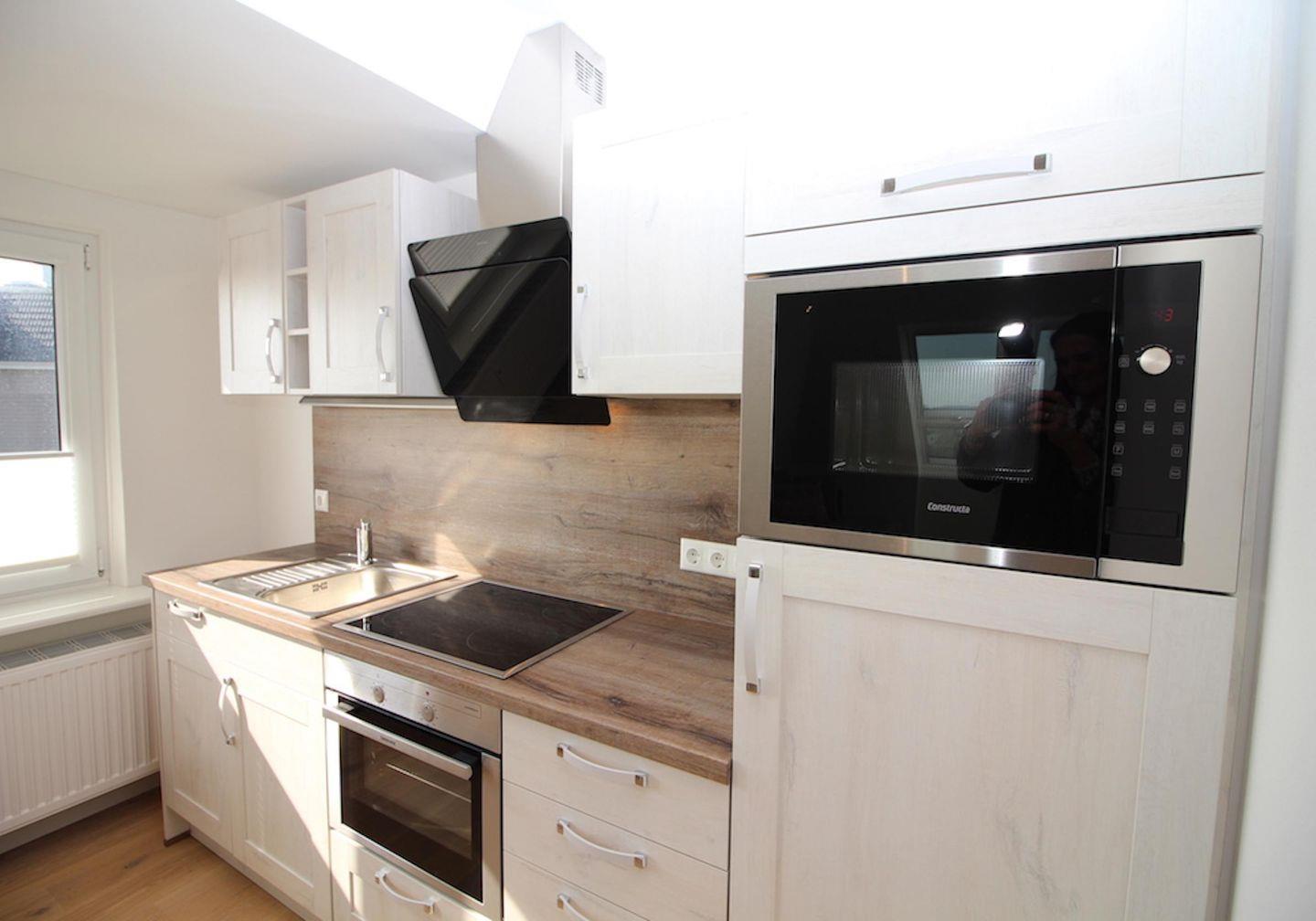 Die helle und bequem eingerichtete Ferienwohnung hat eine Größe von 40 qm. Der Wohnbereich bietet Ihnen eine gemütliche Couch mit Couchtisch. Ein Esstisch mit 2 Stühlen ist ebenfalls vorhanden. Des weiteren bietet die Wohnung einen großen Kleiderschrank. Die neue Küchenzeile ist ausgestattet mit einem Cerankochfeld mit Backofen, Dunstabzugshaube, Kaffeemaschine, Kochtöpfe, Kühlschrank, Toaster und ein Wasserkocher.