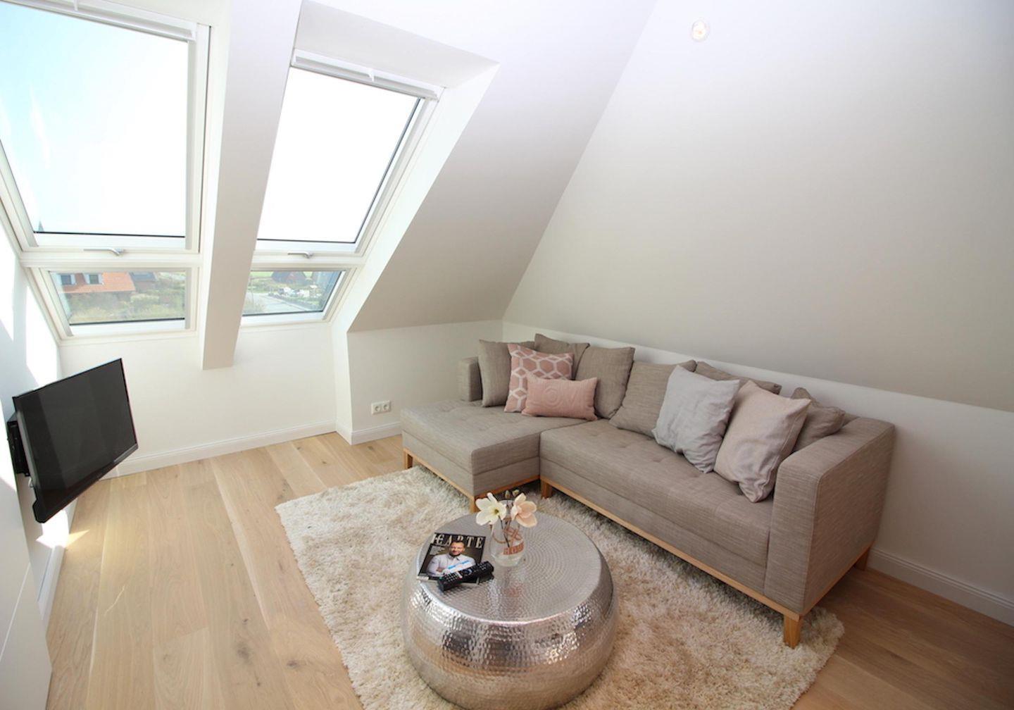 Die helle, freundliche Ferienwohnung im 2. Obergeschoss in Süd-Ost-Lage bietet ausreichend Platz für 2 Personen. Vom Wohnraumfenster aus kann man die Pfahlbauten am Strand hinter dem Deich erblicken.