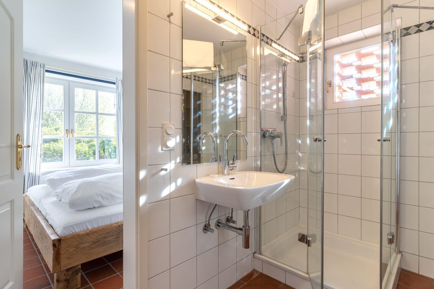 Ein Kamin im Wohnraum bietet ebenso einen warmen Charakter. Die Wohnküche ist mit allen wichtigen Geräten voll ausgestattet und lädt zum gemeinsamen Kochen ein. Im Erdgeschoss ist ebenso ein Doppelschlafzimmer mit großem Einbauschrank, sowie ein Duschbad mit Gäste-WC und einer großzügigen Sauna. Im Empfangsbereicht ist ein Flur mit Garderobe, von hier aus gelangt man in das Obergeschoss. Hier befinden sich 2 Doppelschlafzimmer, eines mit Doppelbett und das Andere mit 2 Einzelbetten. Große Fenster sorgen für viel Licht, in diesem Haus kann der Sonnenauf- bzw. -untergang genossen werden. Außerdem ist im Obergeschoss ein Duschbad und ein Chill-out-room mit einem Schreibtisch.