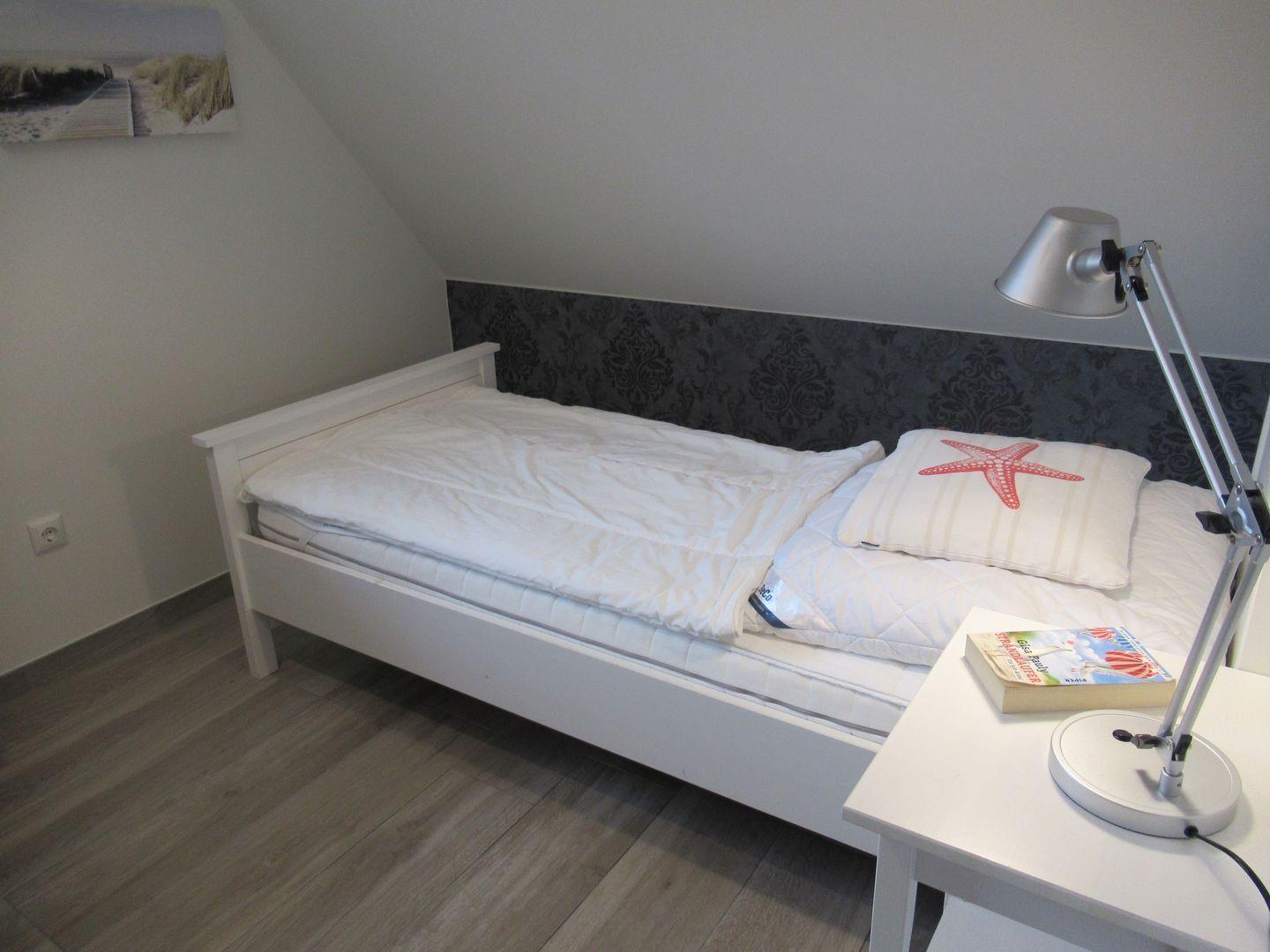 Über eine Steintreppe gelangt man in das Obergeschoss. Dieses verfügt ebenfalls über eine Fußbodenheizung. Es bietet drei Schlafzimmer, eines mit einem Doppelbett, eines mit 2 Einzelbetten + TV und eins mit einem Einzelbett + TV. Kleiderschränke gewähren Ihnen hinreichend Ablageflächen. Darüber hinaus befindet sich im Obergeschoss ein weiteres, geräumiges Bad mit Dusche.