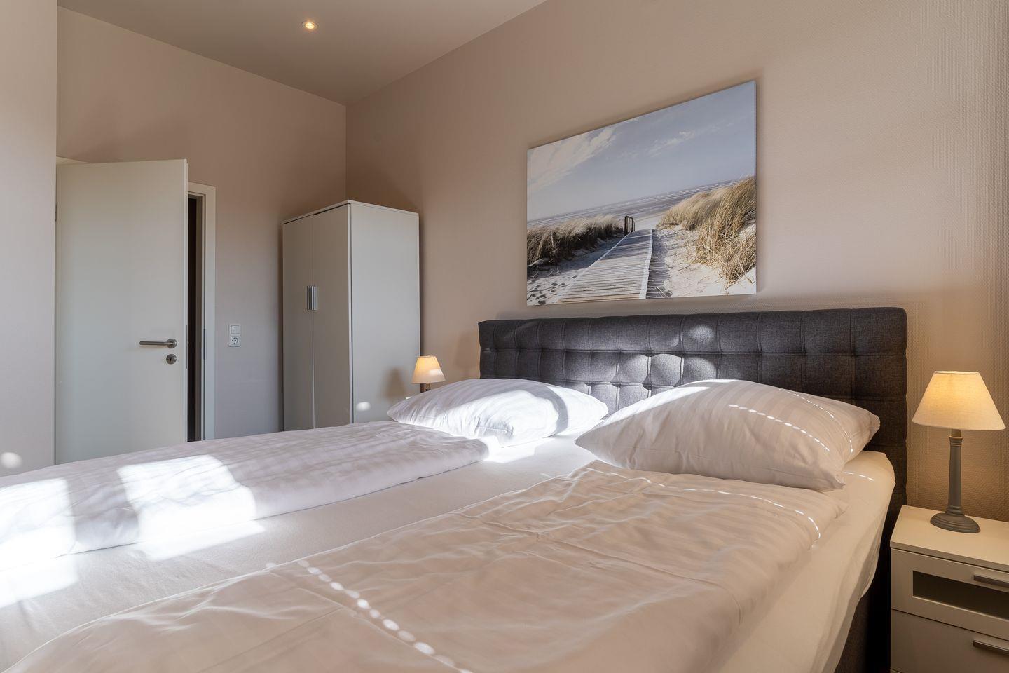 Die drei Schlafzimmer sind jeweils mit einem Boxspringbett und eines mit TV ausgestattet. Die Kleiderschränke gewähren Ihnen hinreichend Ablageflächen.