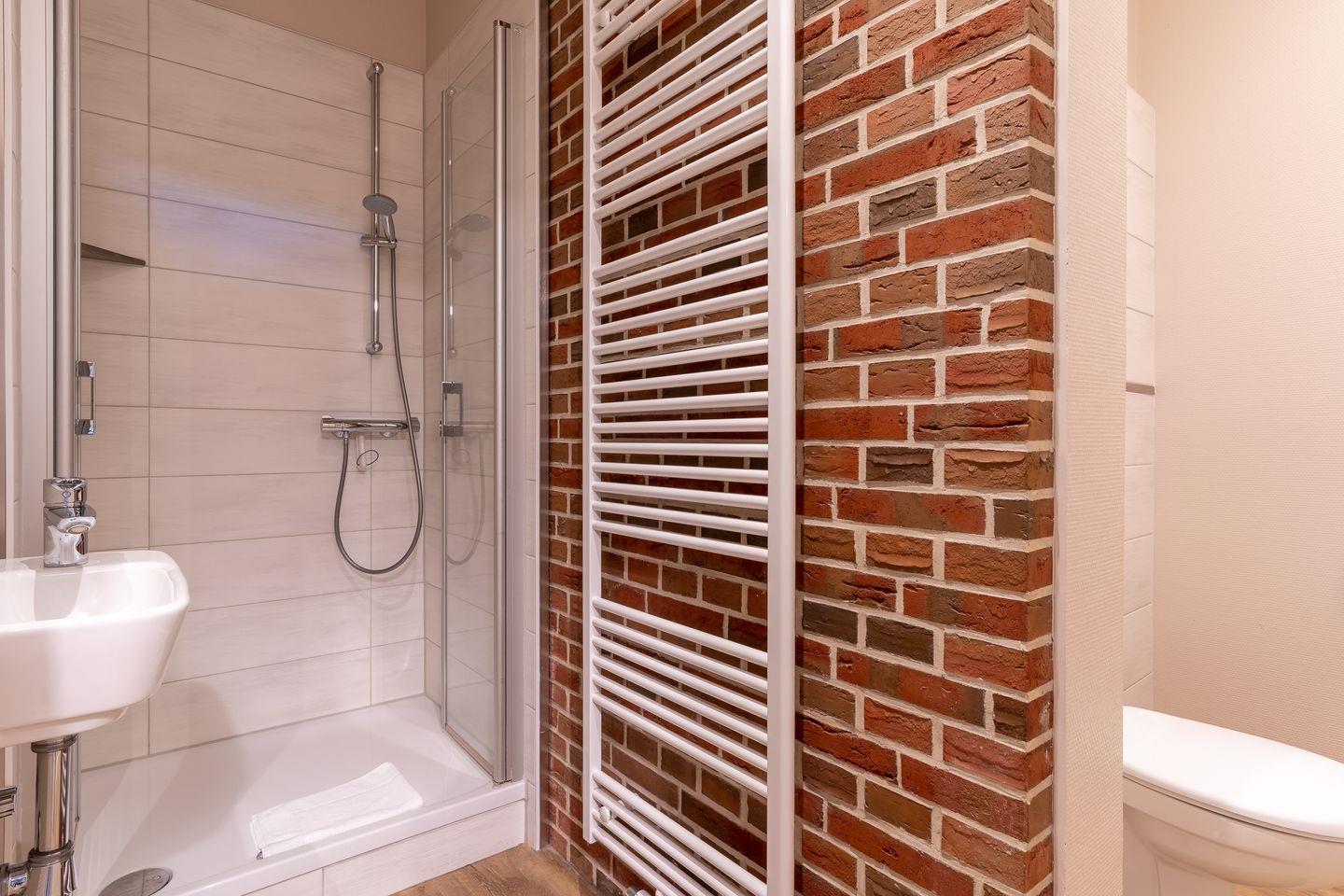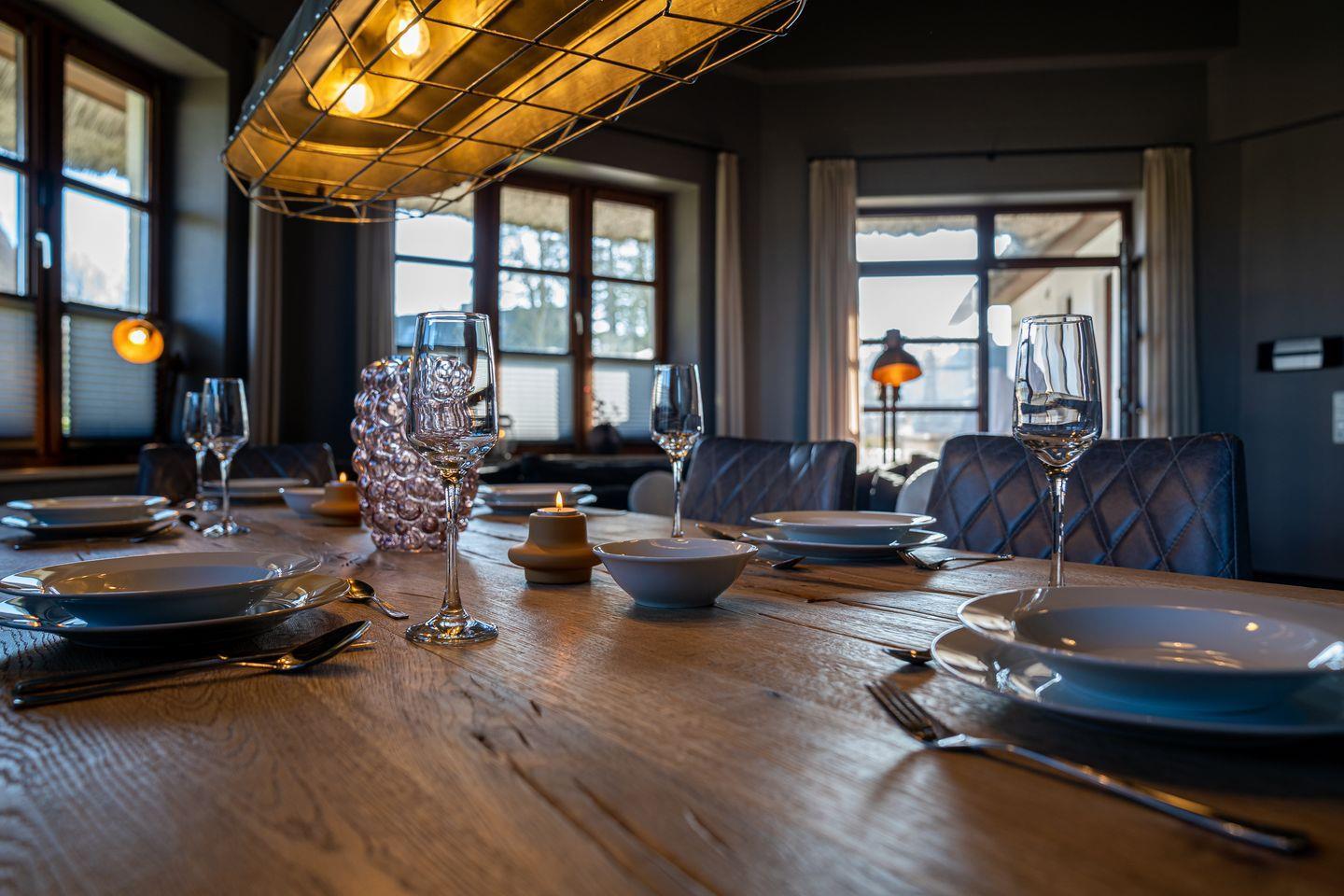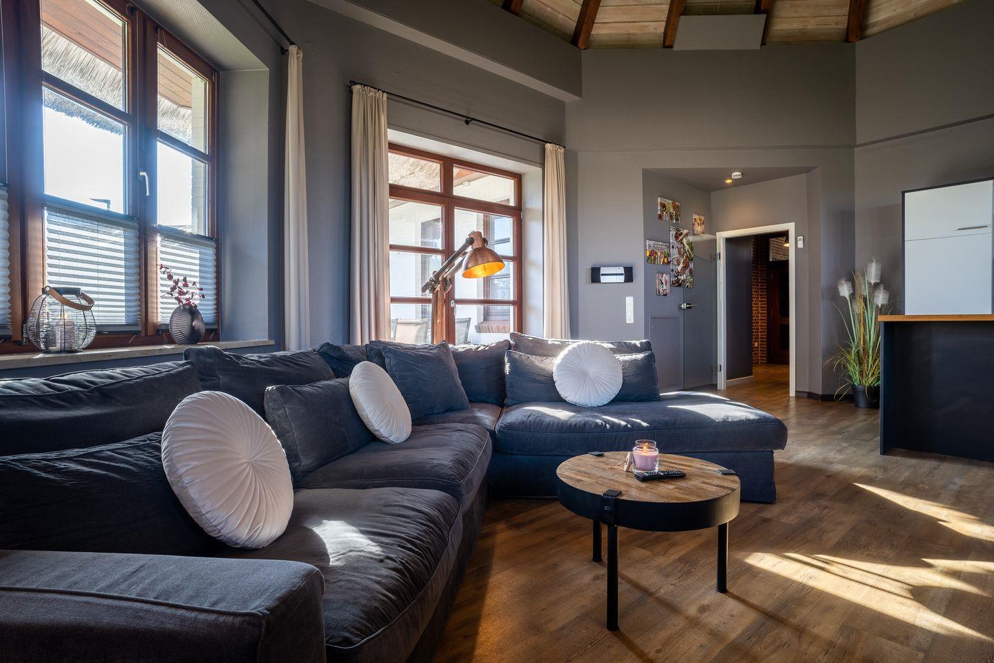 Das App. "Fenne" unter Reet verfügt über ca. 120 m² Wohnfläche und bietet Platz für 1-6 Personen. Die Wohnung befindet sich im Erdgeschoss und bietet großzügigen Platz zum Urlauben. Der lichtdurchflutete und sehr großzügige Wohnraum mit TV und einem stilvollen Essbereich, sowie einer modernen Wohnküche befindet sich im Turmzimmer. Die hohe offene Kegeldecke ist einzigartig. An den Wohnbereich schließen sich ein Flur mit Garderobe und zwei Duschbäder.