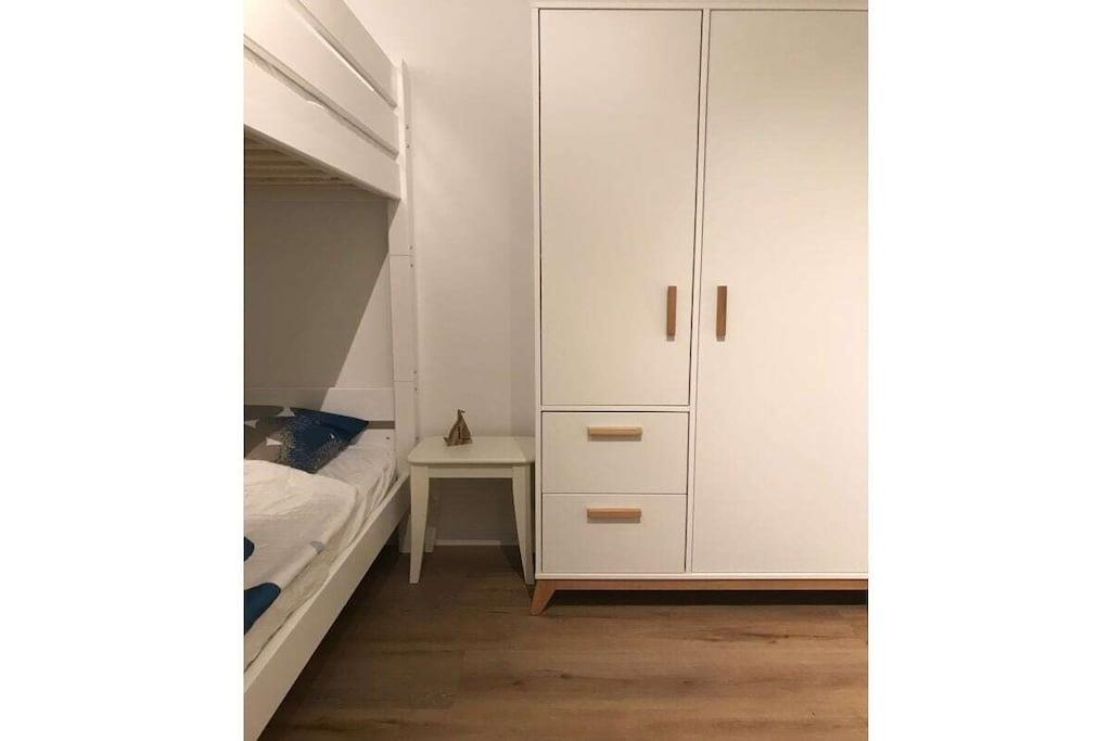 Stueetage: (Køkken(spisebord, kakkelovn, kakkelovn, kakkelovn, kogeplade, elkedel, brødrister, kaffemaskine, ovn, opvaskemaskine , køleskab, fryser, ), Stue/soveværelse(enkeltsovesofa, Fjernsyn, Blu-ray afspiller), Børneværelse(køjeseng, køjeseng, barnestol), badeværelse(bruser, håndvask)) , Internetadgang, Internetadgang, vaskemaskine, balkon(havemøbler)