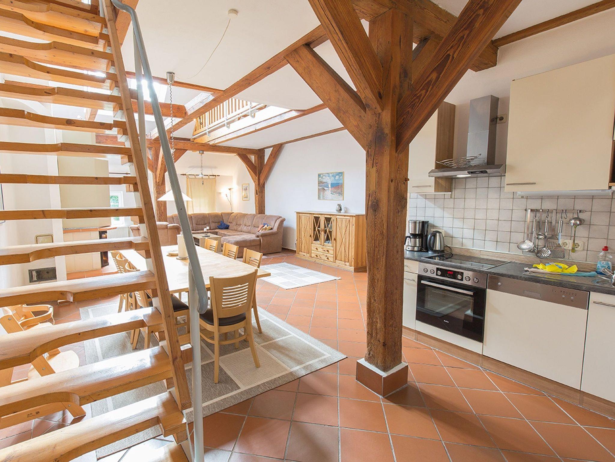 Bis zu 6 Personen haben Platz in der hundefreundlichen Ferienwohnung mit Haus-Charakter - auf 115 qm, 2 1/2 Etagen und eigener Terrasse inklusive Gemeinschaftsnutzung der Poolhalle, Sauna und Spielscheune. Ihre Vierbeiner sind herzlich willkommen. Die ebenerdig zugängliche Wohnung befindet sich mitten im Grünen auf unserem Reitlandhof Franke in Stadland und ist eine von insgesamt 4 Ferienwohnungen - somit auch für Gruppenanfragen und Monteure interessant.