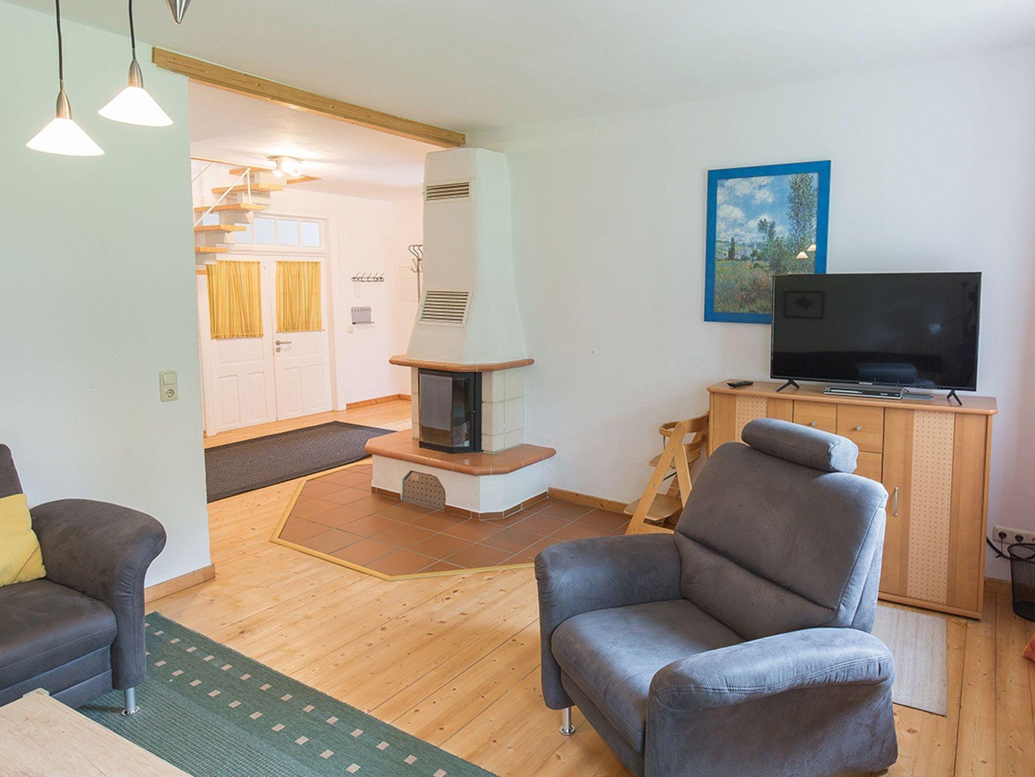 Bis zu 6 Personen haben Platz in der hundefreundlichen Ferienwohnung Komfort - mit Landhaus-Ambiente - auf 125 qm, 2 1/2 Etagen und eigener Terrasse sowie Gemeinschaftsnutzung der Poolhalle, Sauna und Spielscheune sind auch ihre Vierbeiner herzlich willkommen.