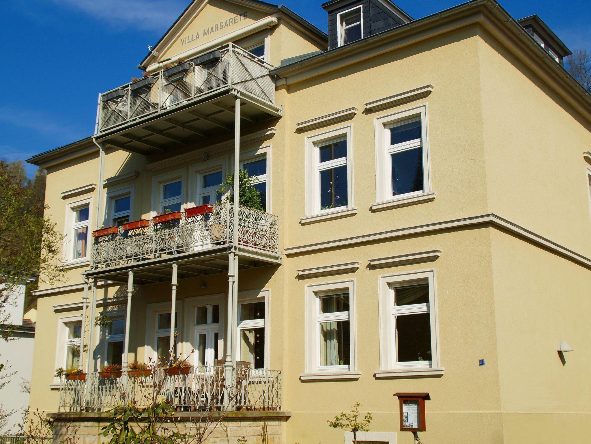 Die Villa Margarete liegt rechtselbisch in Stadt Wehlen in einer ruhigen Anwohnerstraße und nur wenige Meter von der Elbe entfernt.