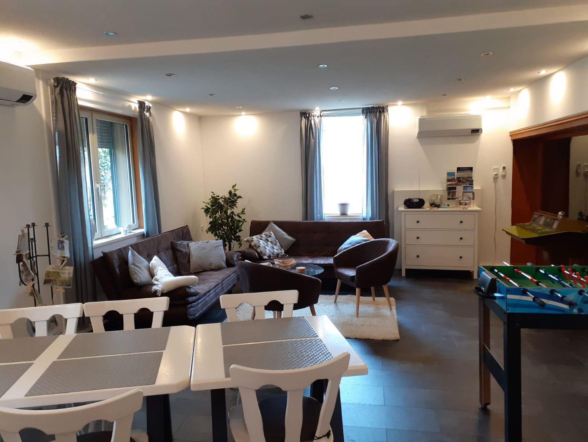 Die Auszeit39 verfügt über einen großzügigen Wohn- und Essbereich sowie eine vollausgestattete Küche. Vom Wohnbereich aus ist die Kegelbahn direkt zugänglich, zwei Bahnen stehen hier für gesellige Stunden zur Verfügung. Neben den zwei Schlafsofas mit Platz für 4 Personen im Wohnzimmer, verfügt die Auszeit39 über ein Schlafzimmer mit Doppelbett. WC und Duschbad sind voneinander getrennt. Eine Spülmaschine steht im Nebenraum zur Verfügung; die Nutzung der Waschmaschine ist auf Anfrage möglich. Bettwäsche und Handtücher sind beim Aufenthalt inkludiert.