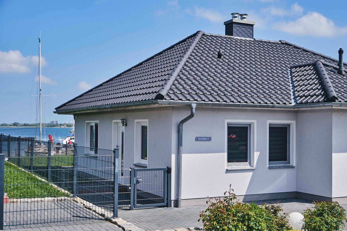 Diese ca. 48 m² große, erstklassig eingerichtete Ferienhaushälfte "Ausblick" für bis zu 4 Personen befindet sich in dem ursprünglichen Fischerort Stahlbrode und hat einen direkten Blick auf den Strelasund.