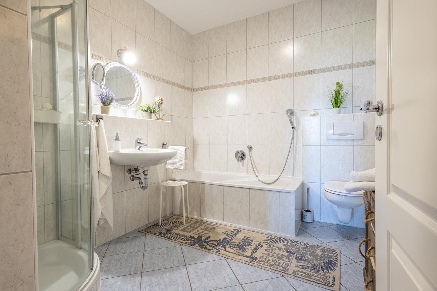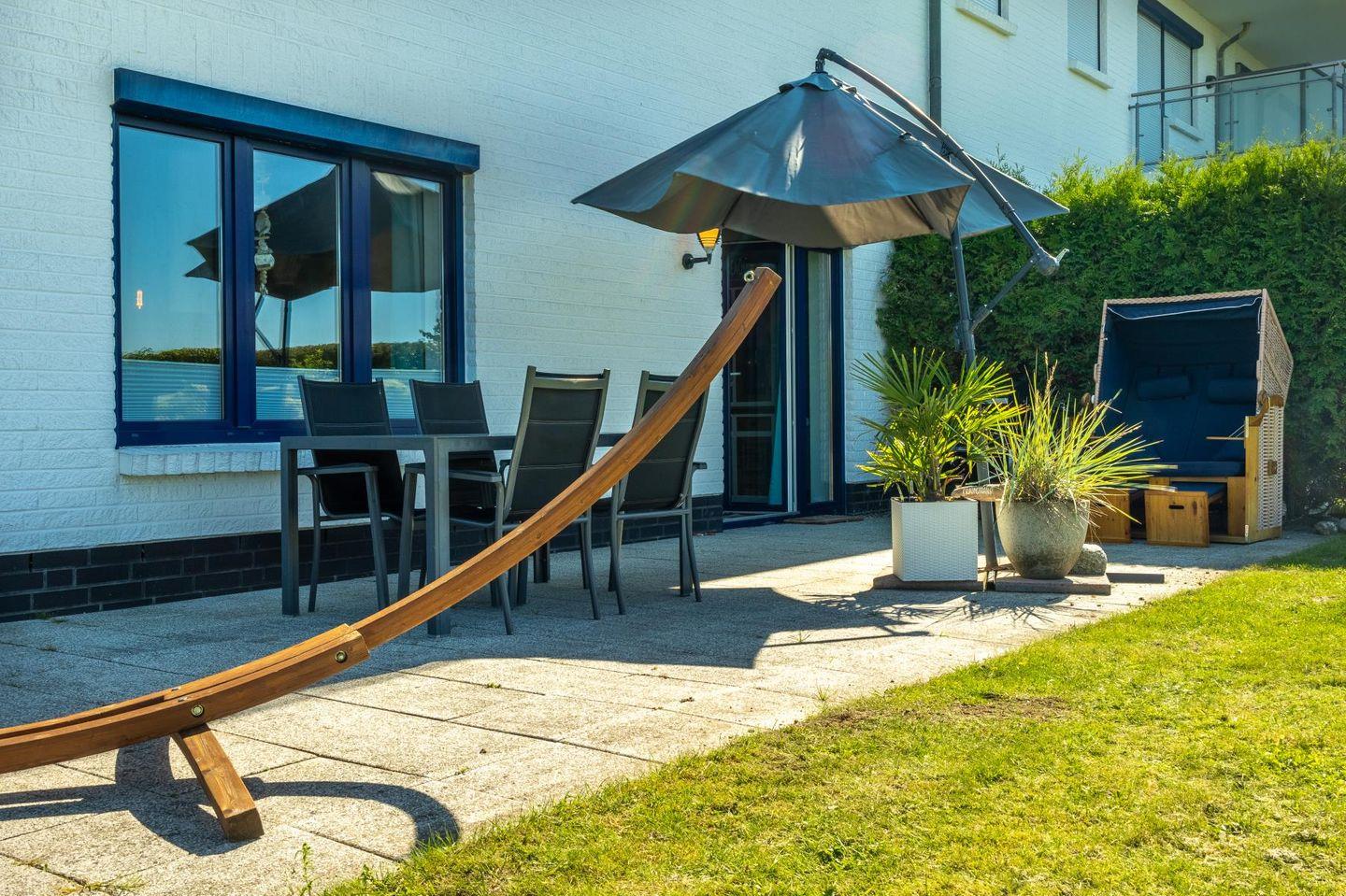 Ein echtes Highlight ist die große möblierte Terrasse mit Grillmöglichkeit. Hier kannst du draußen essen, entspannen oder einfach in deinem Strandkorb sitzen und den Blick über die Ostsee schweifen lassen – Urlaub pur direkt vor der Tür.