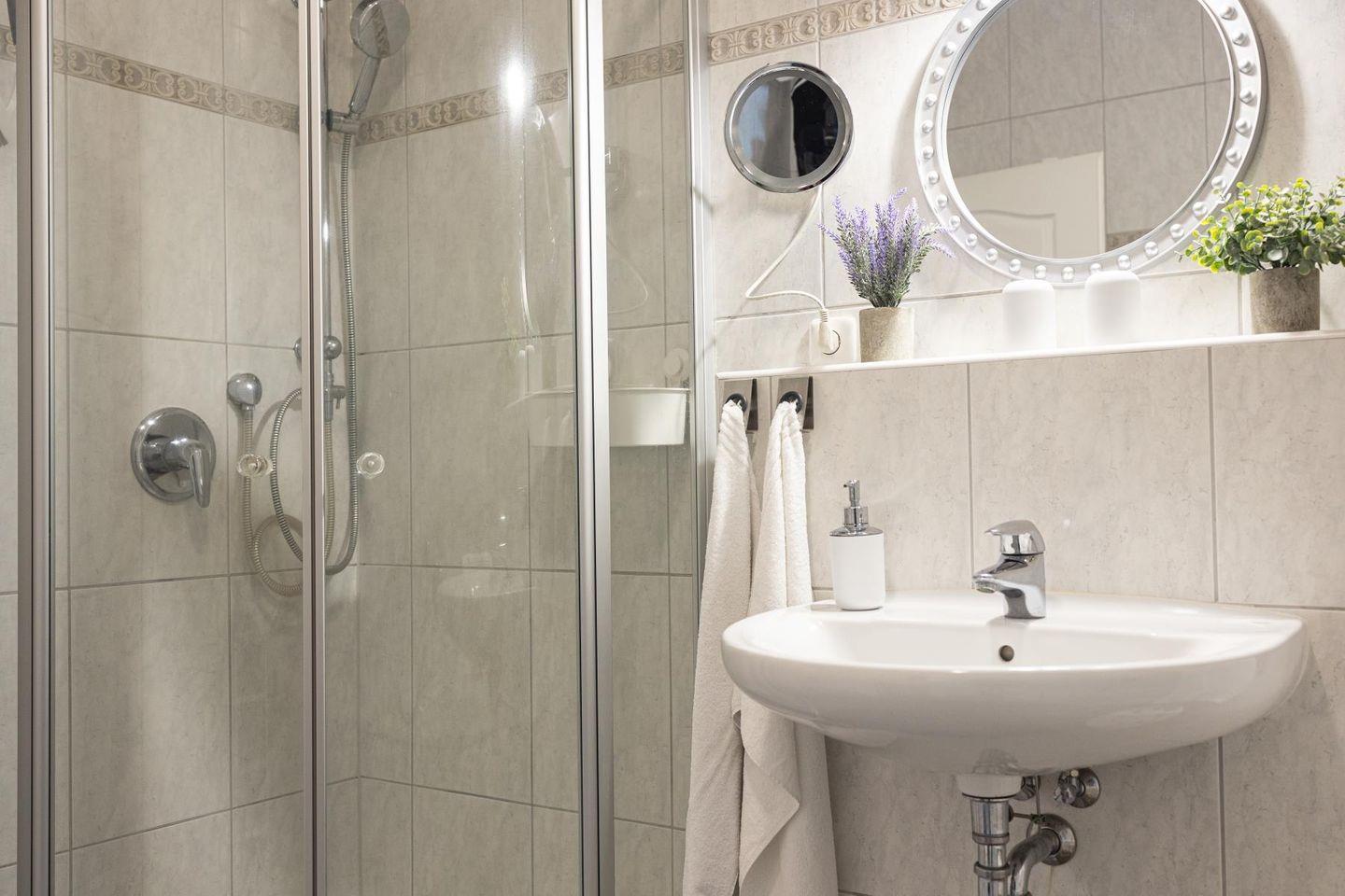 Zur Ausstattung gehören außerdem eine eigene Waschmaschine, kostenfreies WLAN und ein reservierter PKW-Stellplatz. So wird dein Aufenthalt nicht nur schön, sondern auch unkompliziert.