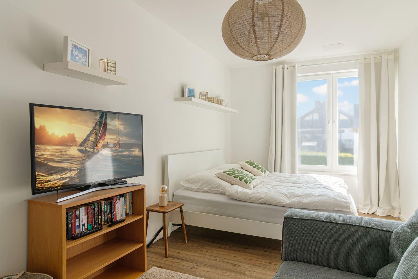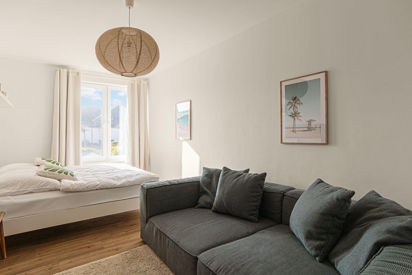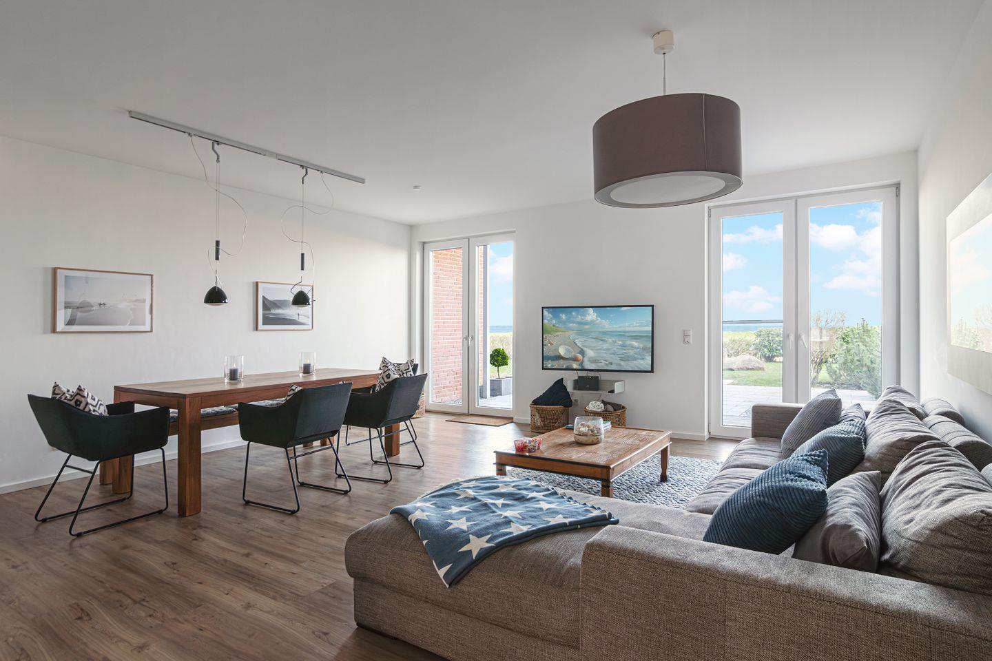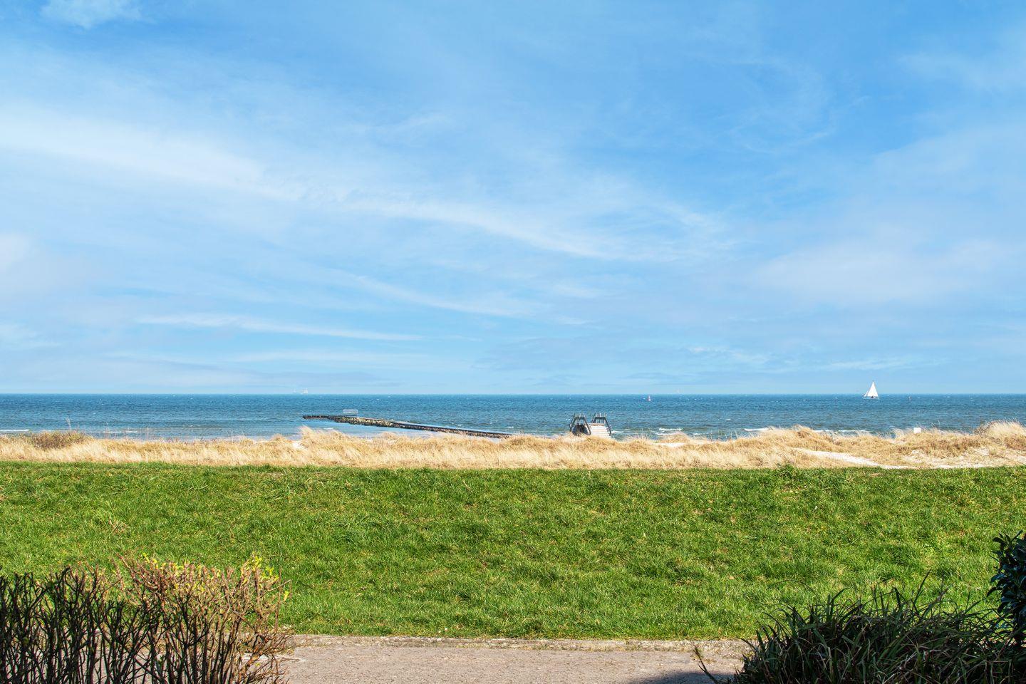 Eine exklusive Ferienwohnung mit Meerblick mit 2 getrennten Schlafzimmern in Stein an der Ostsee in erster Reihe, direkt am Deich. Haustiere sind willkommen.
