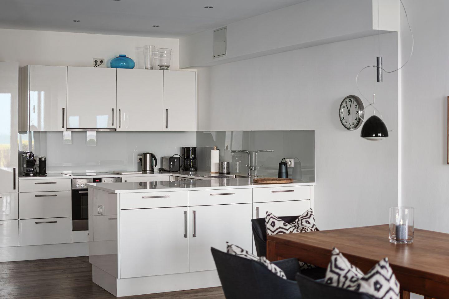 Eine exklusive Ferienwohnung mit Meerblick mit 2 getrennten Schlafzimmern in Stein an der Ostsee in erster Reihe, direkt am Deich. Die Internetnutzung ist über WLAN kostenlos möglich. Diese exklusiv ausgestattete Ferienwohnung liegt direkt am Deich. Sie können von der großzügigen Terrasse direkt zum Strand gehen. Beobachten Sie am Abend bei einer guten Flasche Wein von der Terrasse aus den Sonnenuntergang und das bunte Treiben der Segelschiffe auf der Ostsee. Stein liegt an der Kieler Außenförde zischen Laboe und Marina Wendtorf und dem Schönberger-Strand. Die komplett ausgestattete Gourmetküche gestattet auch im Urlaub ein leckeres Essen nach einem langen Sonnentag am Strand. Haustiere sind hier willkommen.