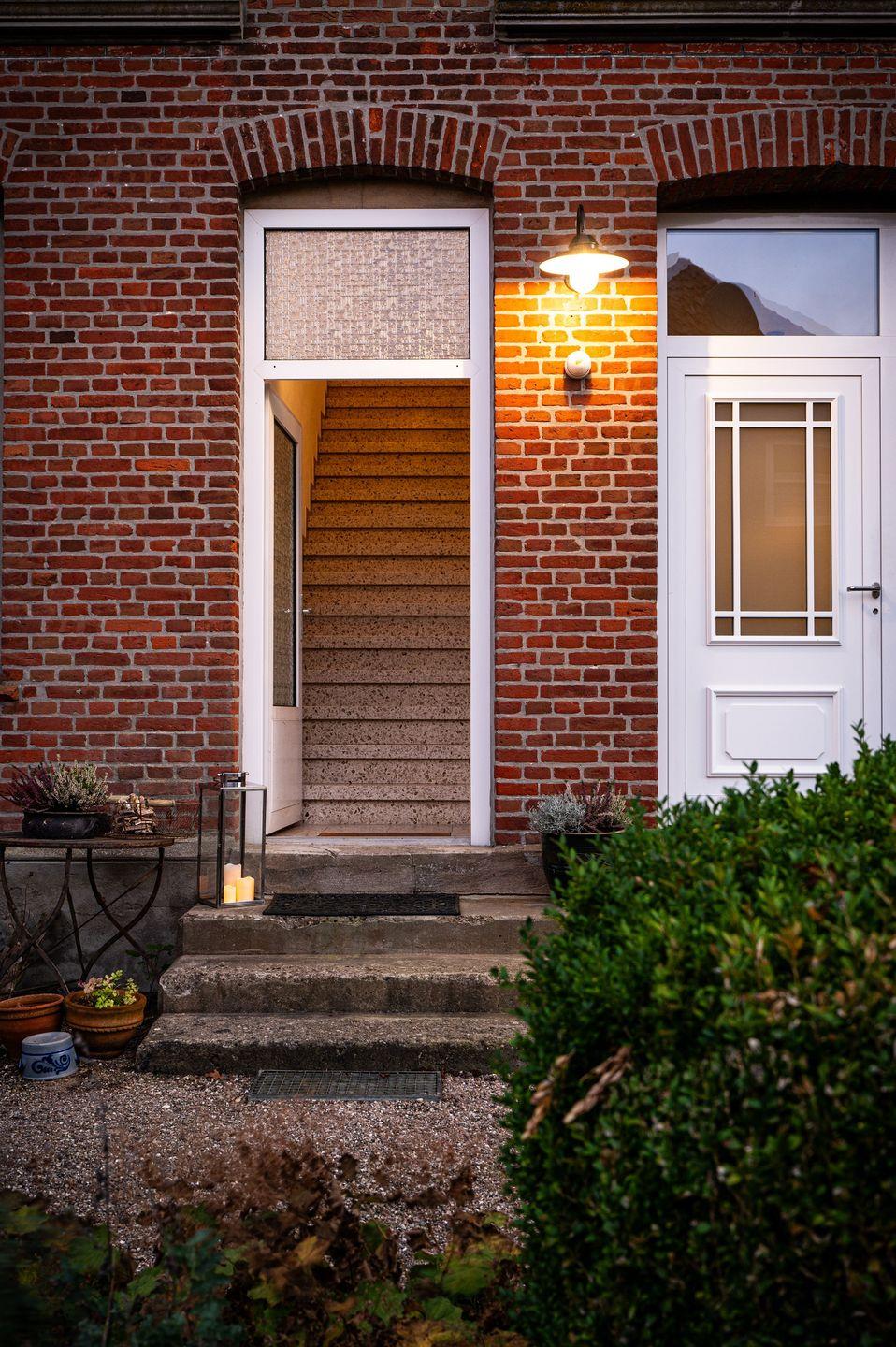 Die Terrasse(n) sind über die Haustreppe ins Erdgeschoss erreichbar und stehen den Urlaubern beider Wohnungen zur Verfügung.