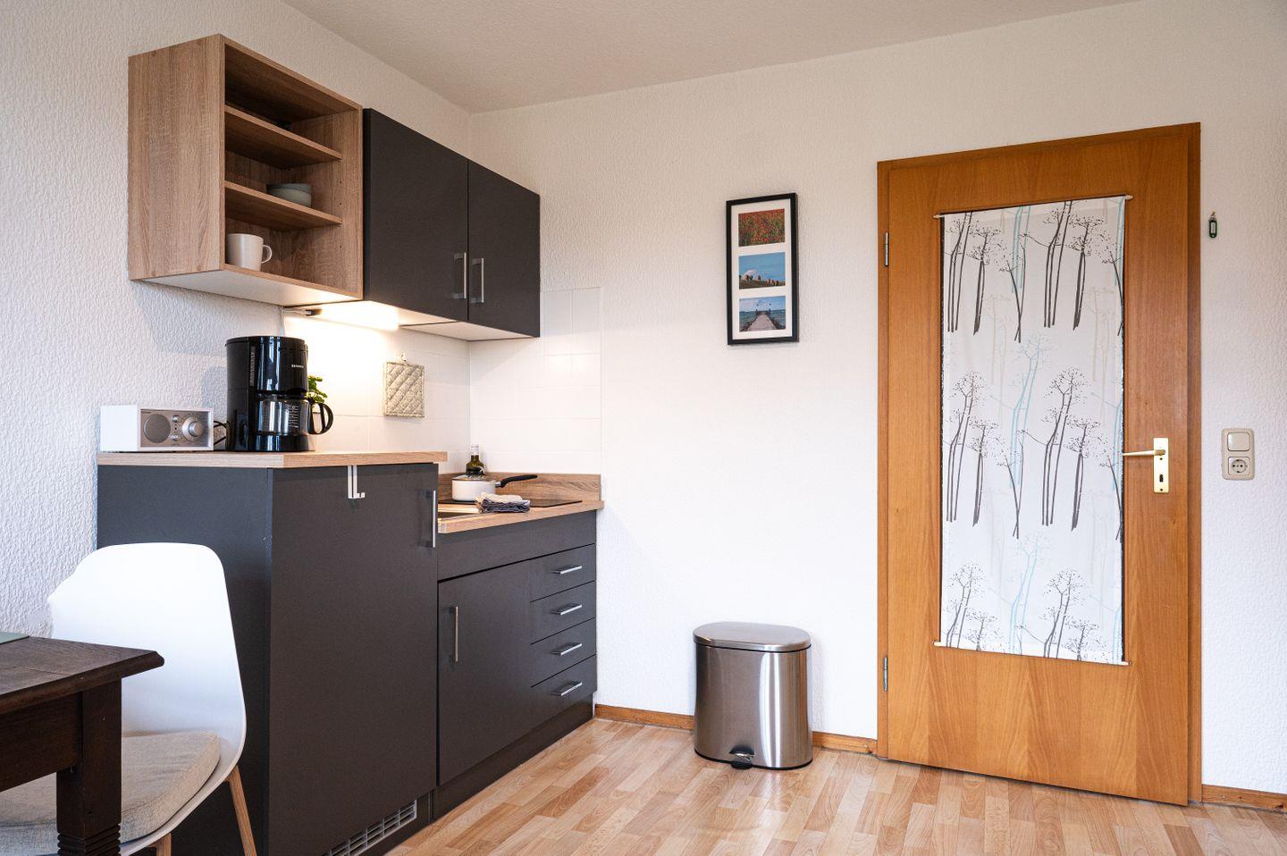 Gemütlichkeit trifft Historie: Die Sööte Stuuv ist der perfekte Rückzugsort für zwei Personen. Der offene Wohnbereich lädt zum Entspannen ein, während die helle und freundliche Einrichtung eine angenehme Wohlfühlatmosphäre schafft. Eine kleine, aber gut ausgestattete Küchenzeile bietet alles, was Sie für ein gemütliches Frühstück oder ein romantisches Abendessen brauchen. Das Schlafzimmer mit einem großen Doppelbett (180x200cm) verspricht erholsame Nächte – ideal, um neue Energie für Ihre Ausflüge in die Probstei und an die Ostsee zu tanken.