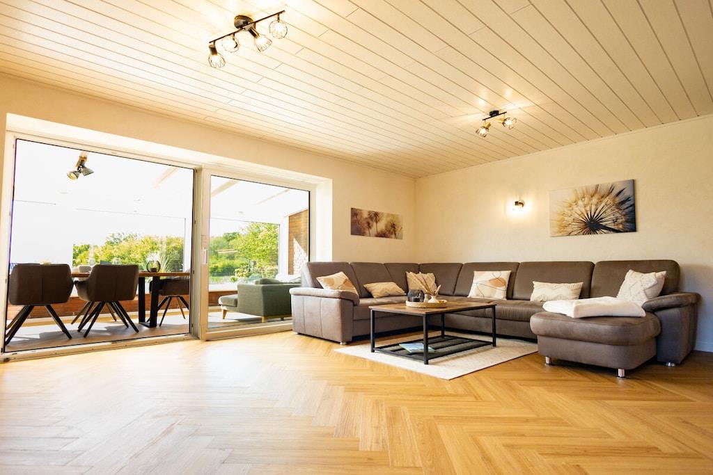 Das traumhafte Ferienhaus mit eingezäuntem (110cm) Grundstück, 800m von der Ostsee entfernt, ist perfekt für die Familie mit Hund und Fahrradfahrer. Das Ferienhaus steht zur allein Nutzung zur Verfügung und hat einen einzigartigen, endlosen Blick über das Angelieter Land. Tolle Tage und Sonnenuntergänge stehen mit der Familie im Garten bevor. Das Ferienhaus ist 85m² groß, hat zwei Schlafzimmer, ein tolles Bad mit Regenfalldusche und eine großzügiges Wohn- Esszimmer mit schönem Kamin. Des weiteren gibt es einen traumhaften ca. 20m² großen Wintergarten der direkt an das Wohnzimmer und die Terrasse angeschlossen ist. Auf der Terrasse und im Garten ist durch Süd- Westausrichtung den ganzen Tag die Sonne zu spüren.