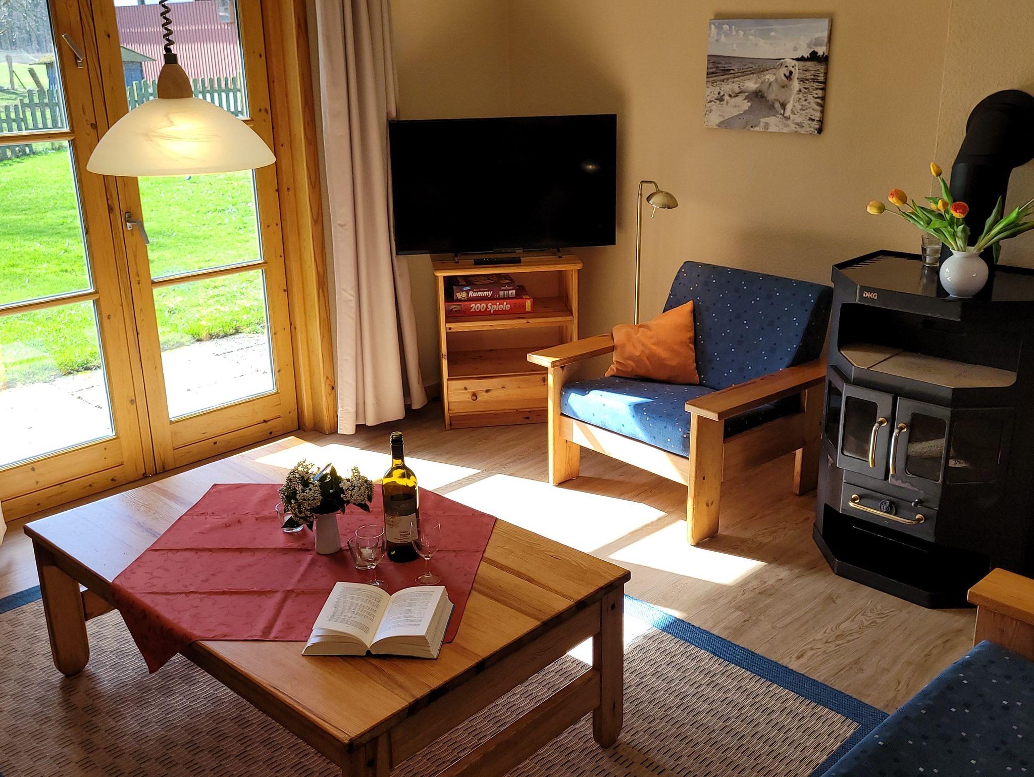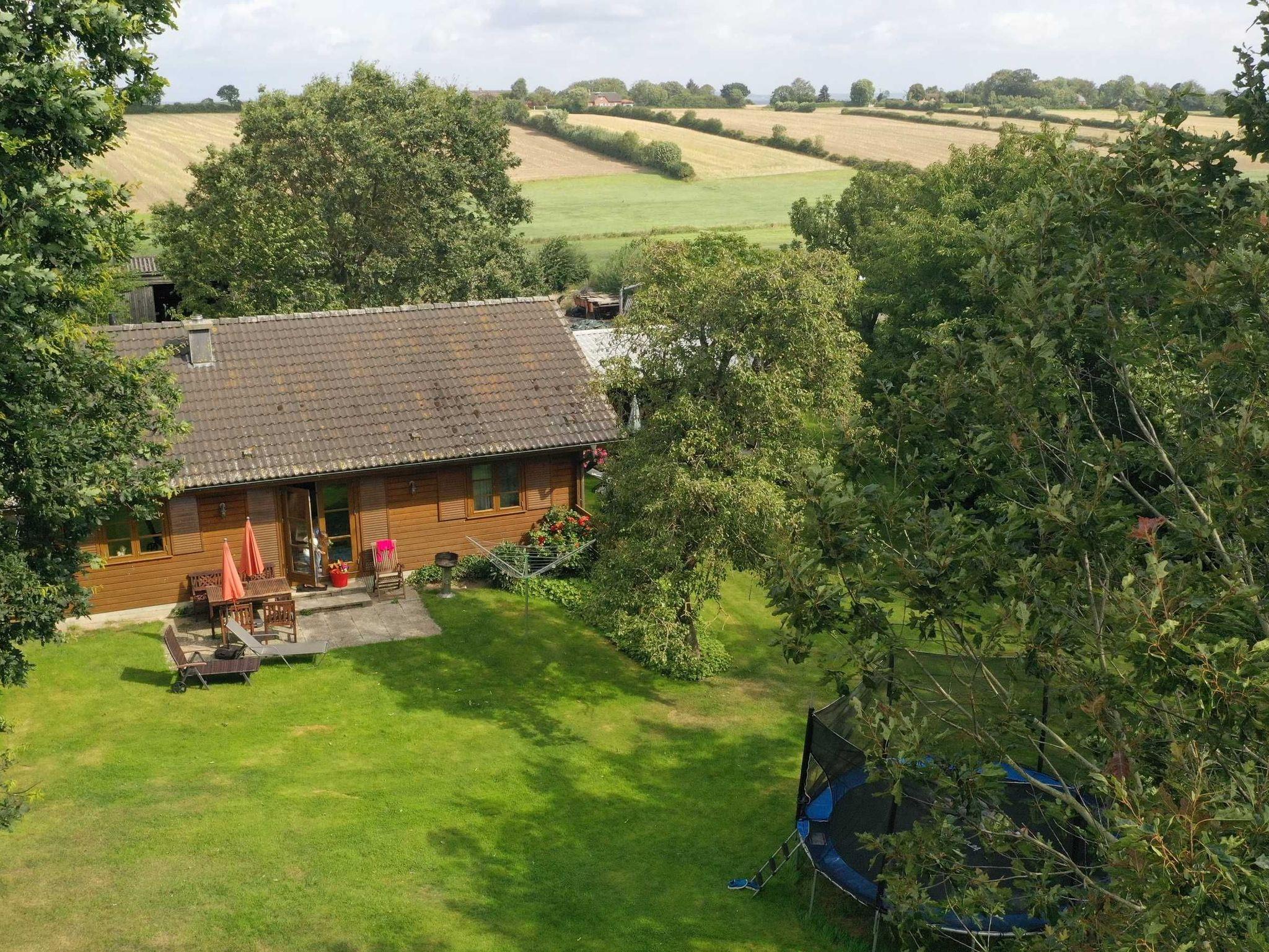 Etwas abseits vom Hof gelegen und von Obstbäumen umgeben bietet das Holzhaus Angeln bis zu 5 Personen (plus 1 KLeinkind) behaglichen Urlaubskomfort:
