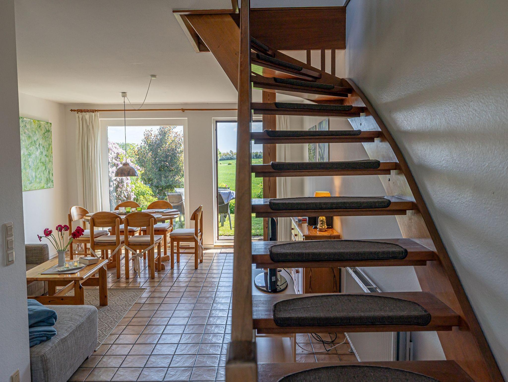 Hinter dem Haus ziehen sich Wiesen und Weiden dahin. Eingegrenzt von den typischen „Knicks“, aus denen morgens und abends Rehe und Fasane zum äsen kommen. Von Ihrer Terrasse aus gut zu beobachten.