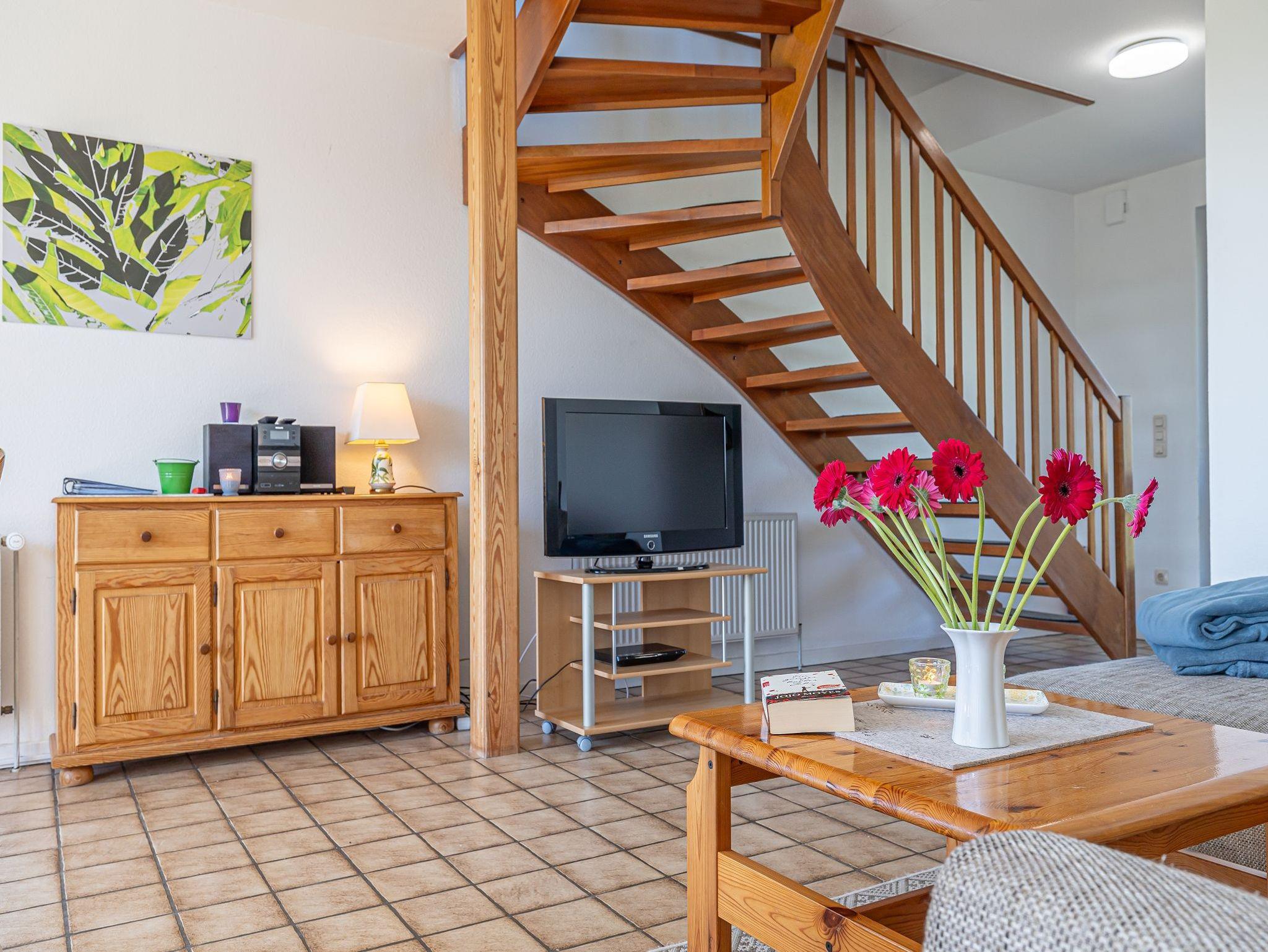 Diese Wohnung ist links die erste Wohnung im Reihenhaus. Sie hat einen separaten Eingang. Nach einem kleinen Flur betreten Sie den offenen Wohnbereich mit gemütlicher Couchecke zum kuscheln, Sitzplatz für gemeinsame Mahlzeiten und anschließender Terrasse. TV-Gerät und Radio ist vorhanden, ebenfalls WLAN.