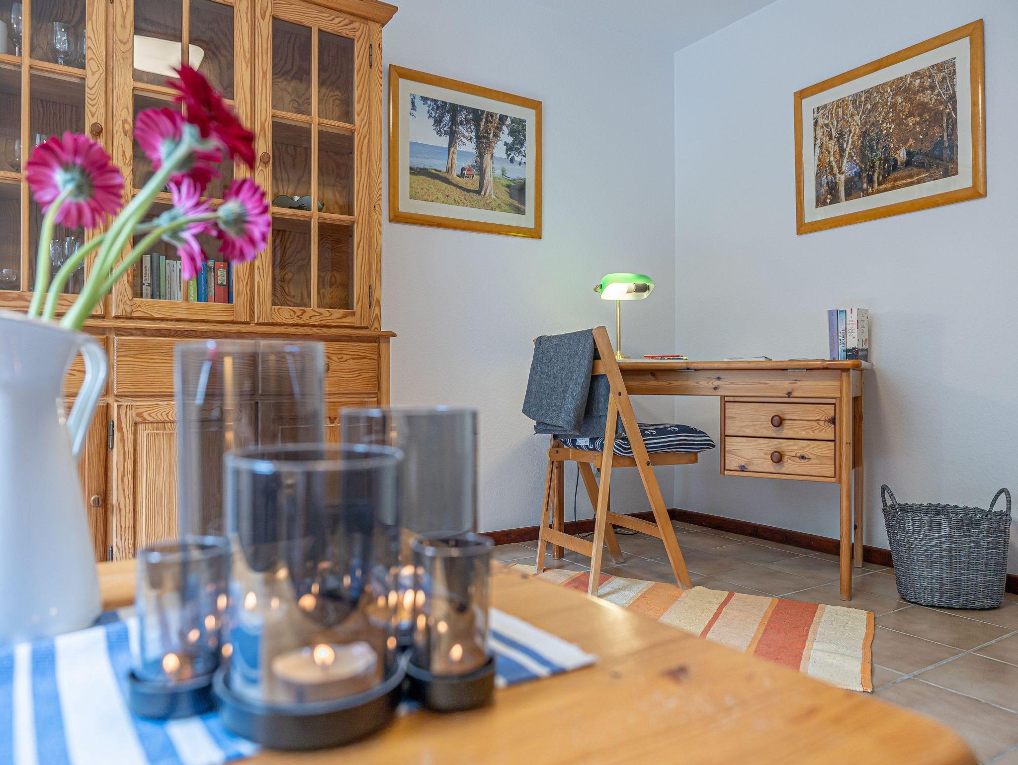 Immer ganz unten im Meer lebt der Seeigel. Die Wohnung ist eine Souterrainwohnung. Diese ist komplett gefliest und verfügt über eine Fußbodenheizung. Über den Flur gelangen Sie rechts ins Wohnzimmer mit gemütlicher Couch und TV-Gerät. Ein großes Schlafzimmer mit Doppelbett lädt zum Entspannen ein. Am kleinen Schreibtisch lässt sich bequem die Urlaubspost erledigen. Die Küche ist groß und verfügt über alle Dinge zum Kochen und Backen. Sie hat einen Backofen, Kühlschrank und Mikrowelle. Am Esstisch lässt sich gut gemeinsam Sitzen. Das Bad hat eine Badewanne und WC, sowie einen Waschtisch. Das Wäschepaket ist für 25,00 € pro Person zu buchbar.