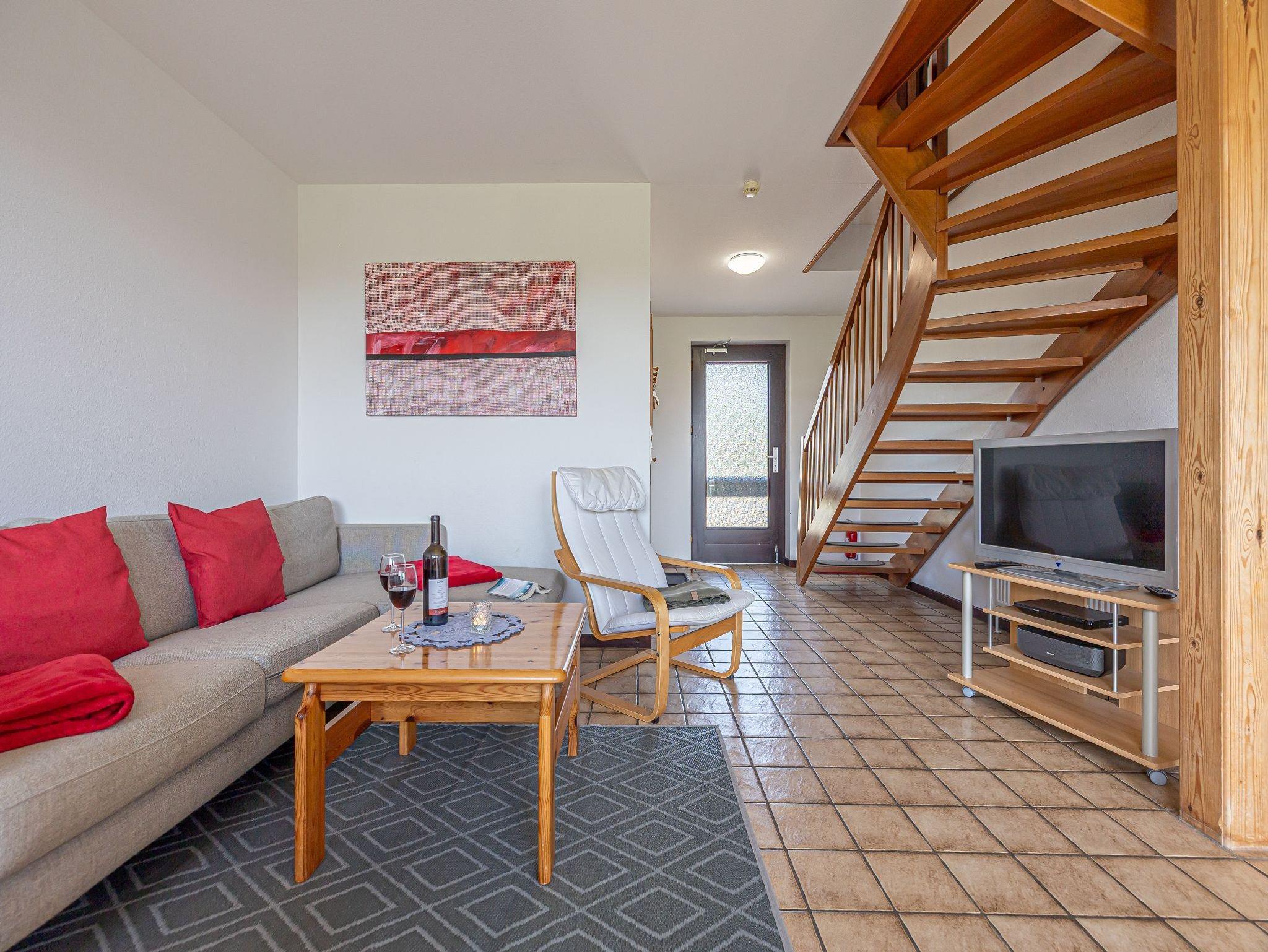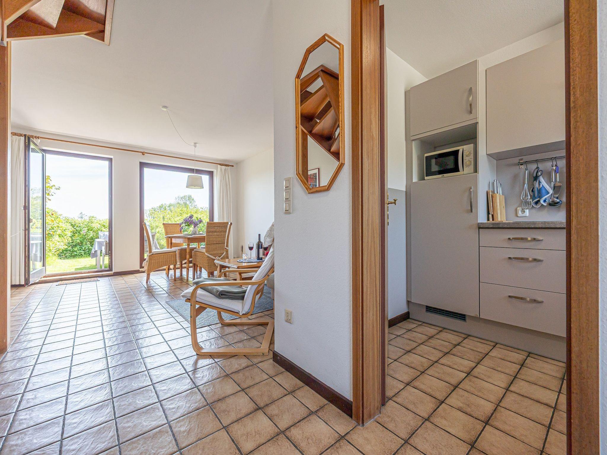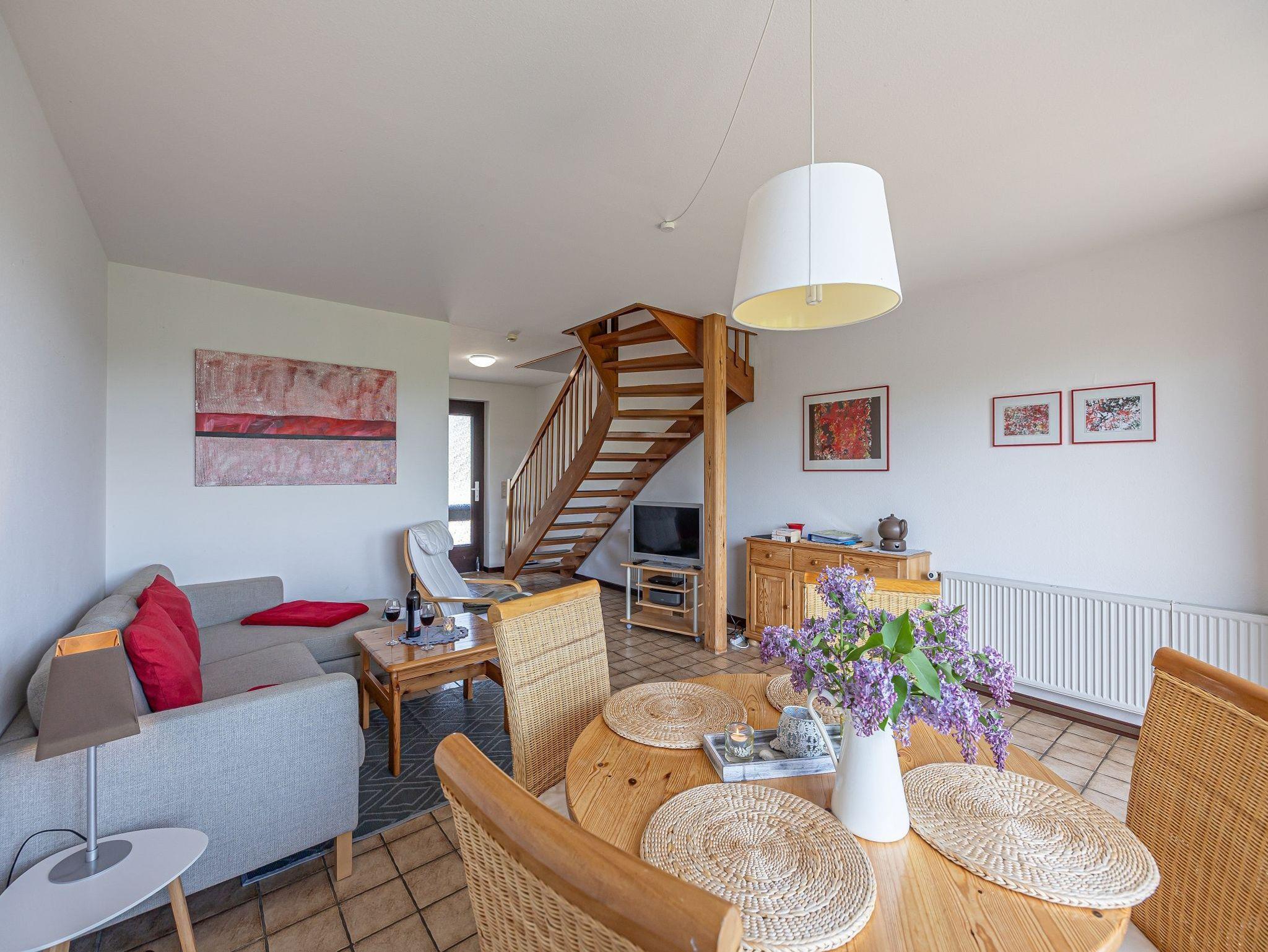 In einer der fünf schöne Ferienwohnungen im Reihenhaus wohnen hinter dem eingerückten Rosenwall an der Dorfstraße nur unweit vom Meer entfernt. Die Ferienwohnung Kormoran für bis zu 4 Personen (plus 1 Kleinkind) bietet viel Raum zum Wohlfühlen und Entspannen.