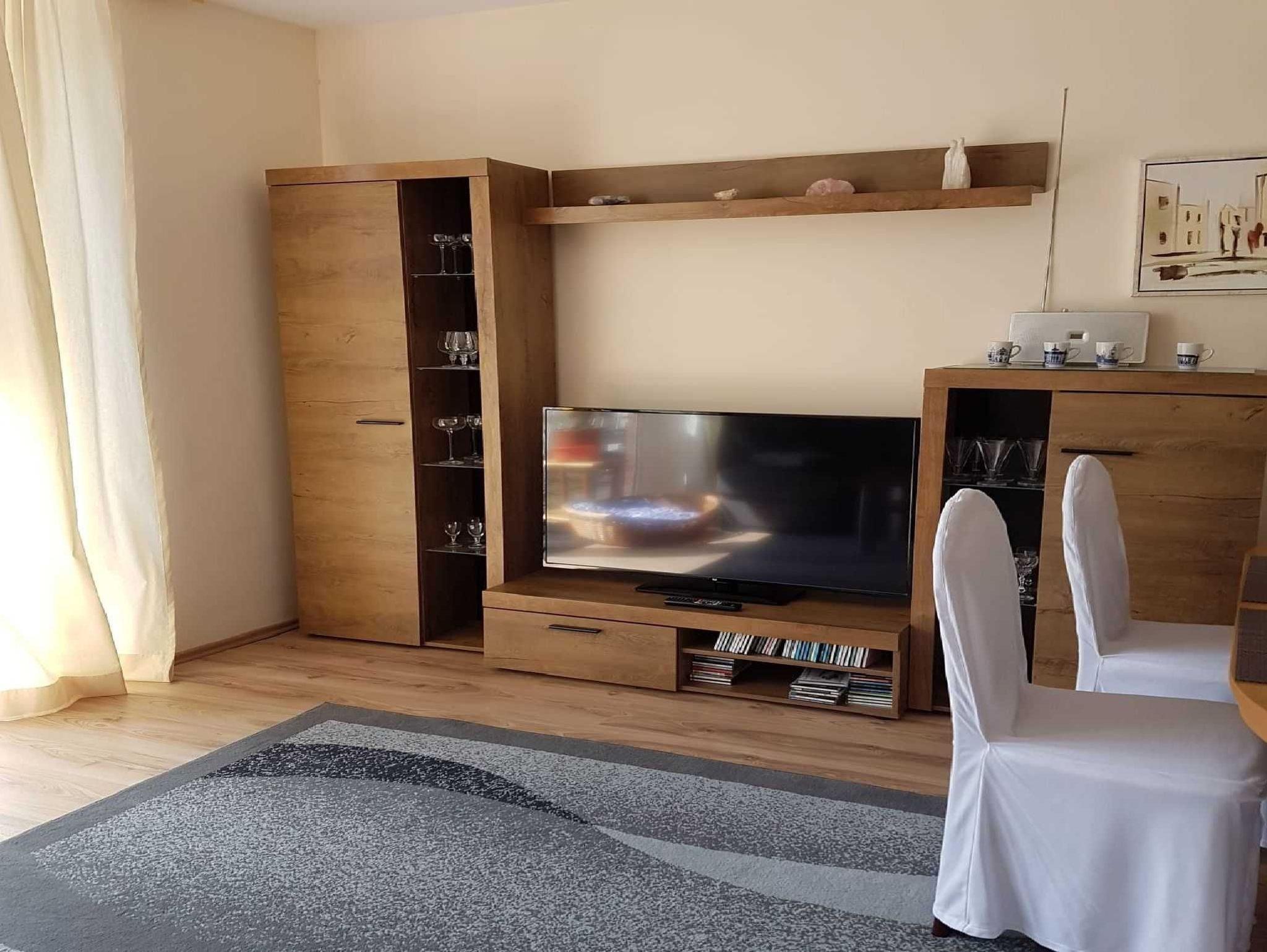 Die gemütlich eingerichtete und ebenerdigie Ferienwohnung ist modern gestaltet und bietet bis zu 4 Personen und einem Kleinkind, viel Gemütlichkeit und Komfort. Die Fußböden sind im praktischen Designerbelag in Holzoptik sowie mit Fliesen gehalten. Die Ferienwohnung ist auch für Rollstuhlfahrer geeignet.