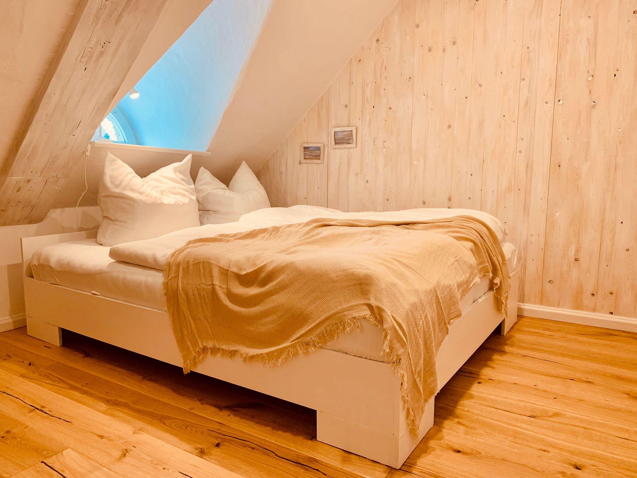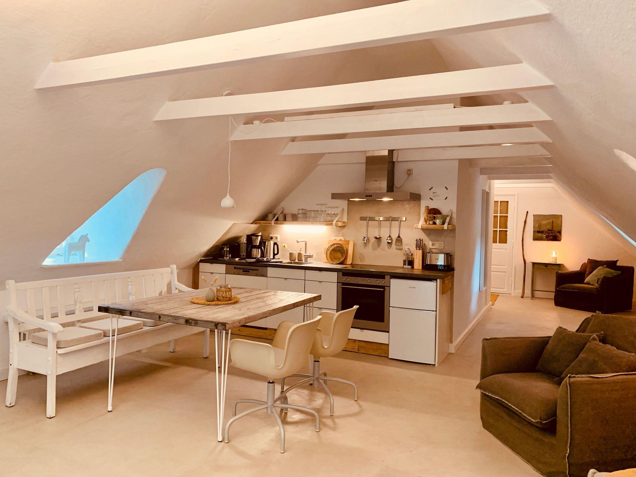Die Ferienwohnung Söss befindet sich im Obergeschoss des Anbaus am Hauptgebäude und ist liebevoll in einem individuellen MIx aus Modern und Antik gestaltet.