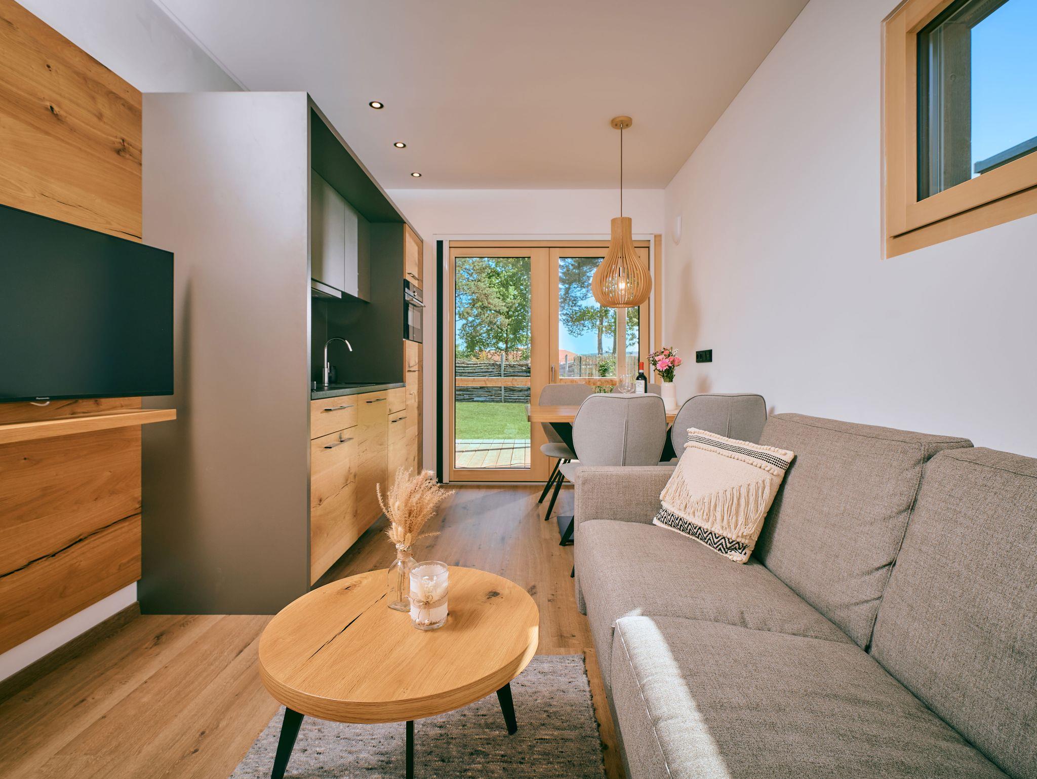 Zwei Schlafzimmer und ein Wohnzimmer mit integrierter Küchennische sowie ein Badezimmer mit getrennter Toilette ermöglichen allen Gästen, sich frei im Haus zu bewegen und das zu tun, wonach ihnen ist: Lesen, Fernsehen schauen, Schlafen oder Pläne schmieden. Die Sauna mit integriertem Ruheraum sowie der Whirlpool dienen der Gesundheit und Entspannung. Der kleine private Wellnessbereich unserer Relaxchalets befindet sich im Außenbereich und ist überdacht. Somit ist bei jeder Witterung perfekte Entspannung möglich. WLAN ist selbstverständlich, ein TV-Gerät ergänzt das Angebot dieser See-nahen Sorte von Chalet, an dem Du abends auf der Terrasse den Tag ausklingen lassen kannst. Privatsphäre, Entspannung & Wellness – das alles findest Du in unseren Relaxchalets!