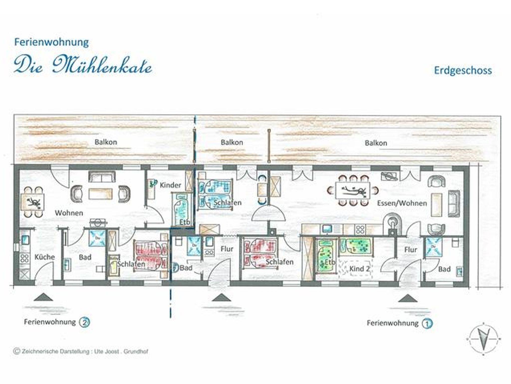 Die ebenerdige Ferienwohnung Mühlenkate II für bis zu 4 Personen liegt ca. 200 Meter vom Gut entfernt nahe der ehemaligen Wassermühle. Die Wohnung ist im charmanten Landhausstil gestaltet.