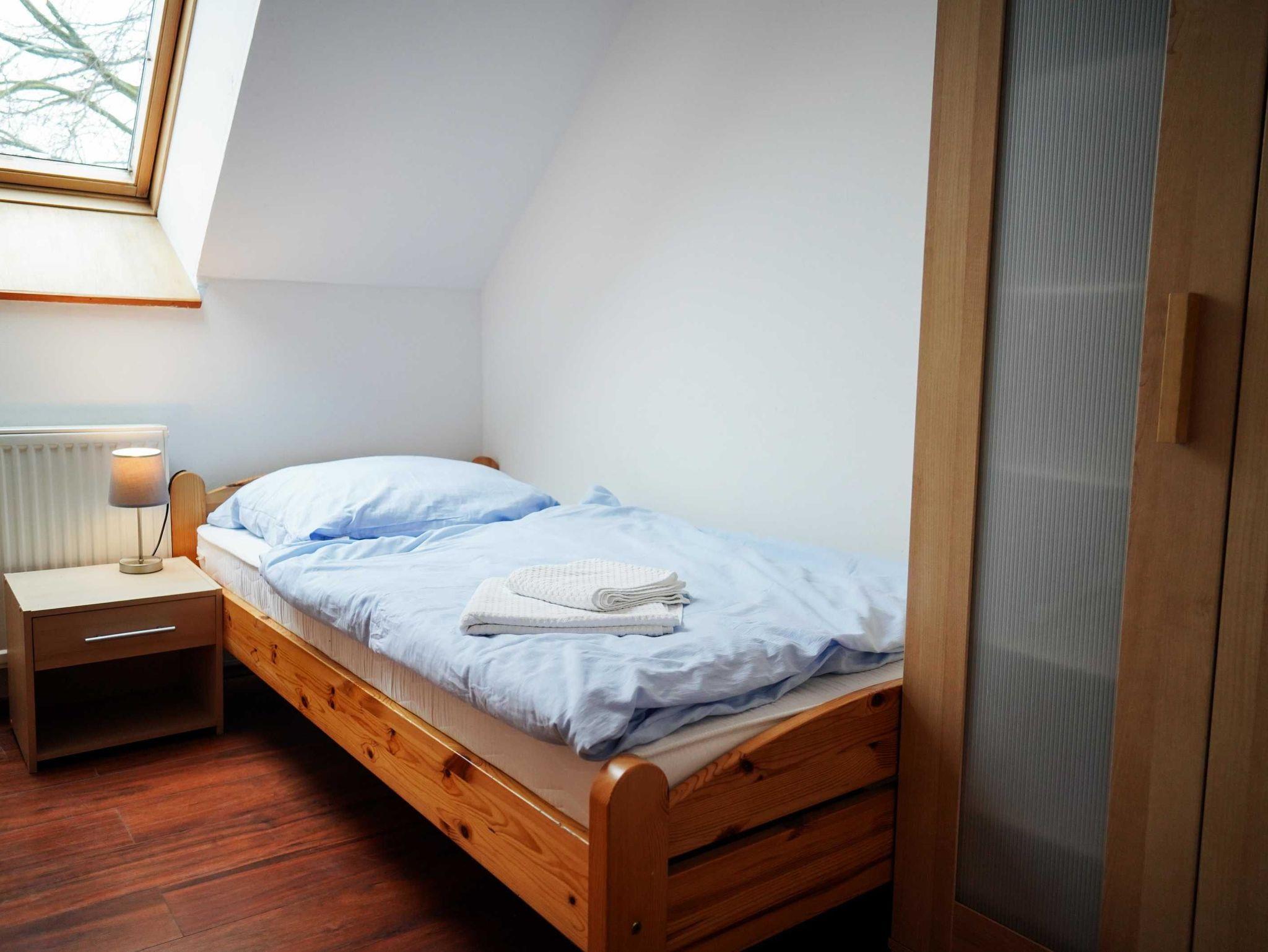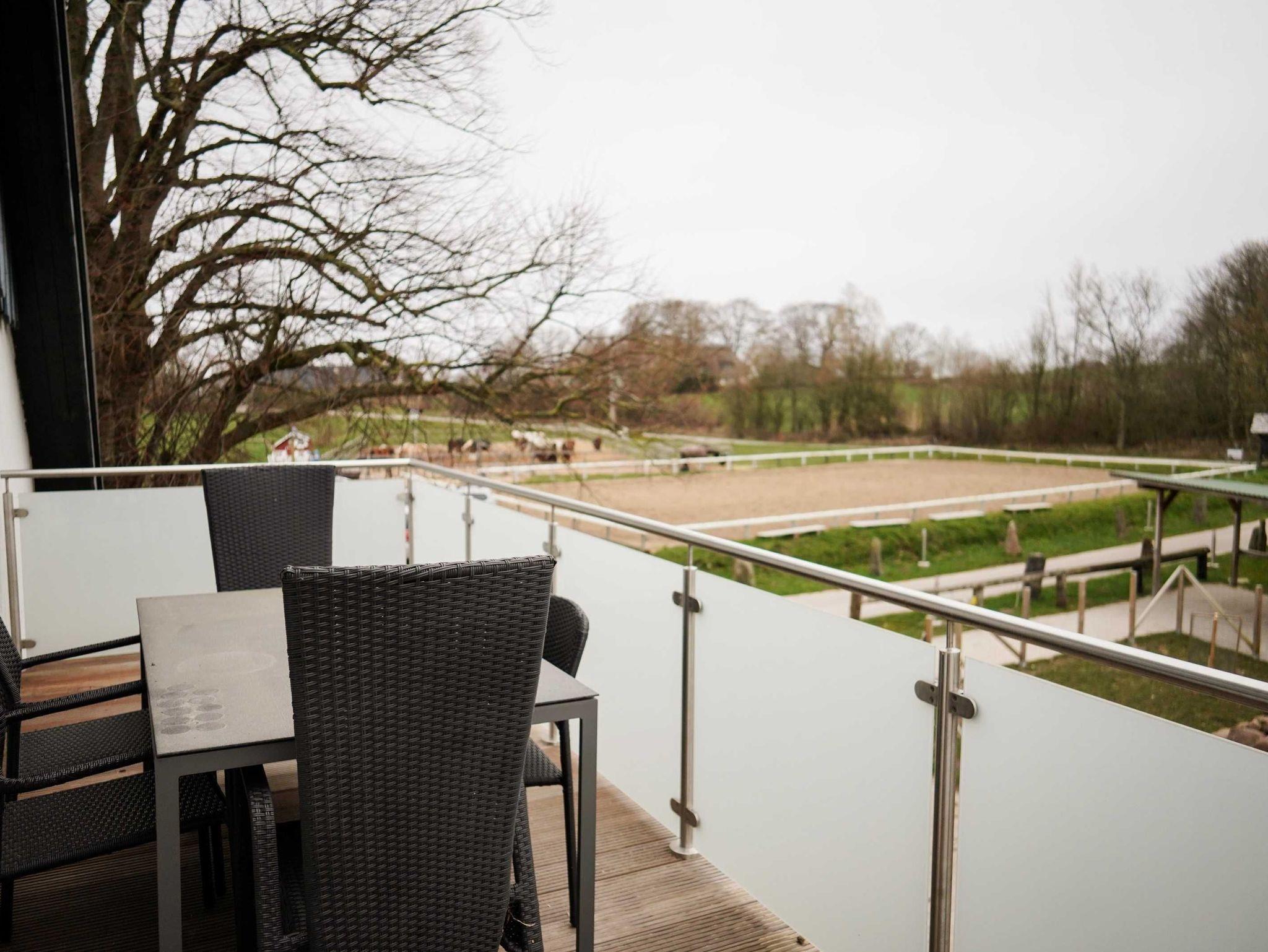 Bis zu 6 Personen haben in der 73 qm großen Dachgeschoss-Wohnung im Country-Stil Platz. Neben drei Schlafzimmern (1x mit Doppelbett, 1x mit Etagenbett, 1x mit 2 Einzelbetten) verfügt die Wohnung über ein Badezimmer und ein separates WC. Die schöne Küche mit Theke verfügt über eine Spülmaschine. Vom Balkon der Country Wohnung blickt man direkt auf den Sattelplatz und den Reitplatz.