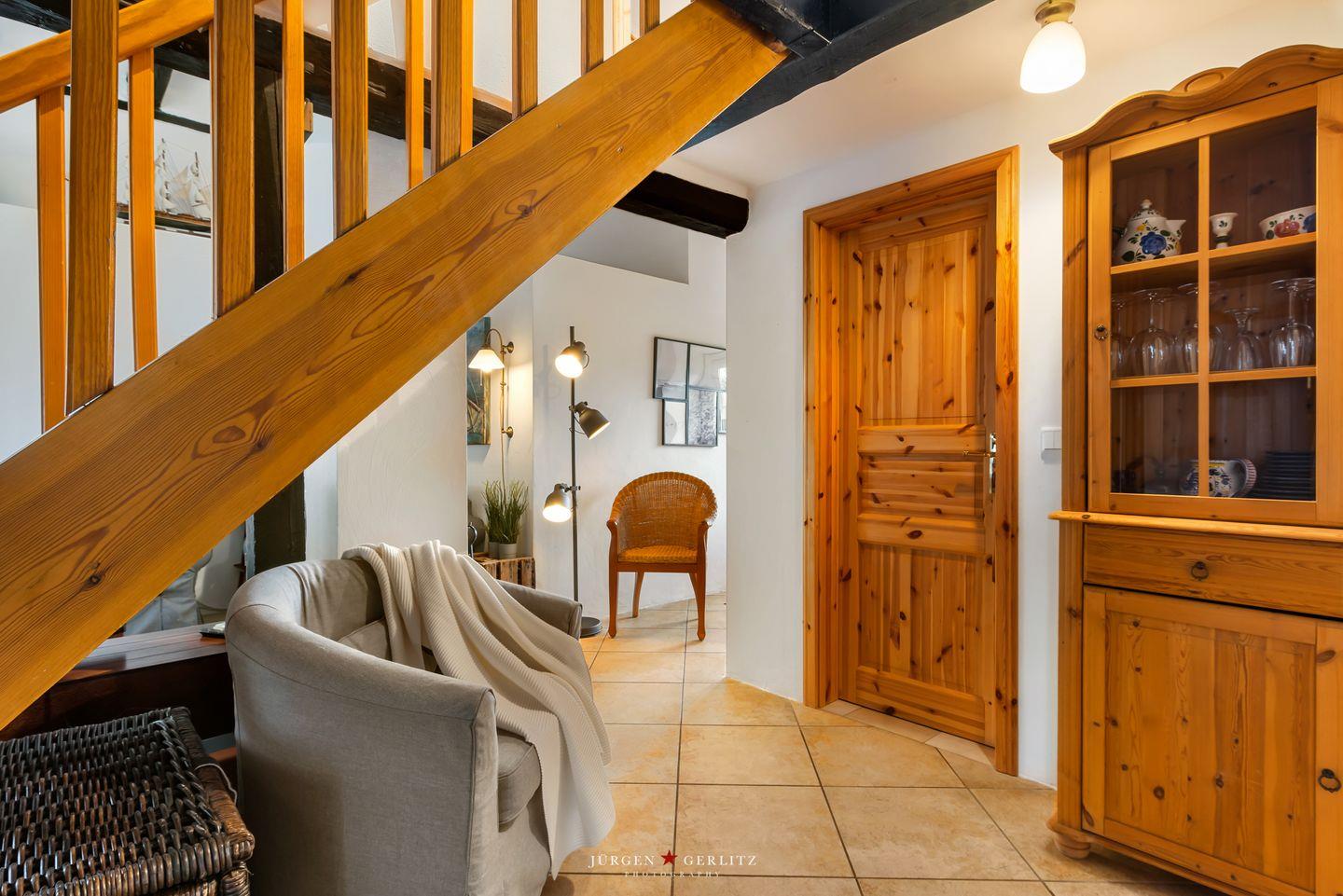 Fühlen Sie sich wie im Märchen, in der Ferienwohnung "Dornröschen I"! Auf 2 Ebenen verteilt bietet sie Ihnen Platz für bis zu 6 Personen. In dem gemütlichen Wohnbereich, mit einer voll ausgestatteten Küche & einem Kamin, können Sie es sich gemütlich machen. Zwei, der drei Schlafzimmer, verfügen über Doppelbetten & das dritte über 2 Einzelbetten. Zudem gibt es noch 2 helle Bäder. Hinter dem Haus befinden sich Sitzmöglichkeiten, von hier können Sie die weitläufige Landschaft genießen.