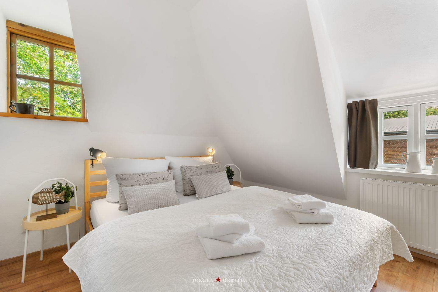 Fühlen Sie sich wie im Märchen, im wunderschönen Reetdachhaus "Dornröschen" an der Geltinger Bucht! Das Apartment "Dornröschen I" mit ca. 100m² über 2 Ebenen bietet viel Platz für einen erholsamen Urlaub. Im gemütlichen Wohnzimmer mit dänischem Kaminofen, Kuschelsofa, Sesseln und Büchern können Sie mit Ihren Liebsten ausspannen. Die Wohnküche ist voll ausgestattet und verfügt über einen direkt angrenzenden Essbereich. Das Haus hat 2 Bäder mit ebenerdigen Duschen. Im 1. Obergeschoss befinden sich die 3 Schlafzimmer. Ein Schlafzimmer ist ausgestattet mit einem gemütlichen Doppelbett und die anderen Schlafzimmer jeweils mit 2 komfortablen Einzelbetten, die bei Bedarf auch auseinander geschoben werden können. Außerdem ist Ihr Vierbeiner hier herzlich willkommen. Hinter dem Haus gibt es ein Außenbereich mit Sitzgelegenheiten, von dem aus Sie die weitläufige Landschaft mit Wiesen und Feldern genießen können. Auch vor dem Haus gibt es eine kleine Holzterrasse, auf der es sich wunderbar in der Sonne frühstücken lässt. Ein kostenloser PKW-Parkplatz ist vorhanden.