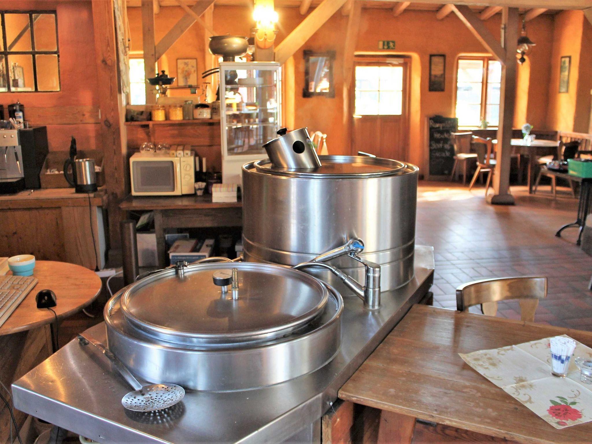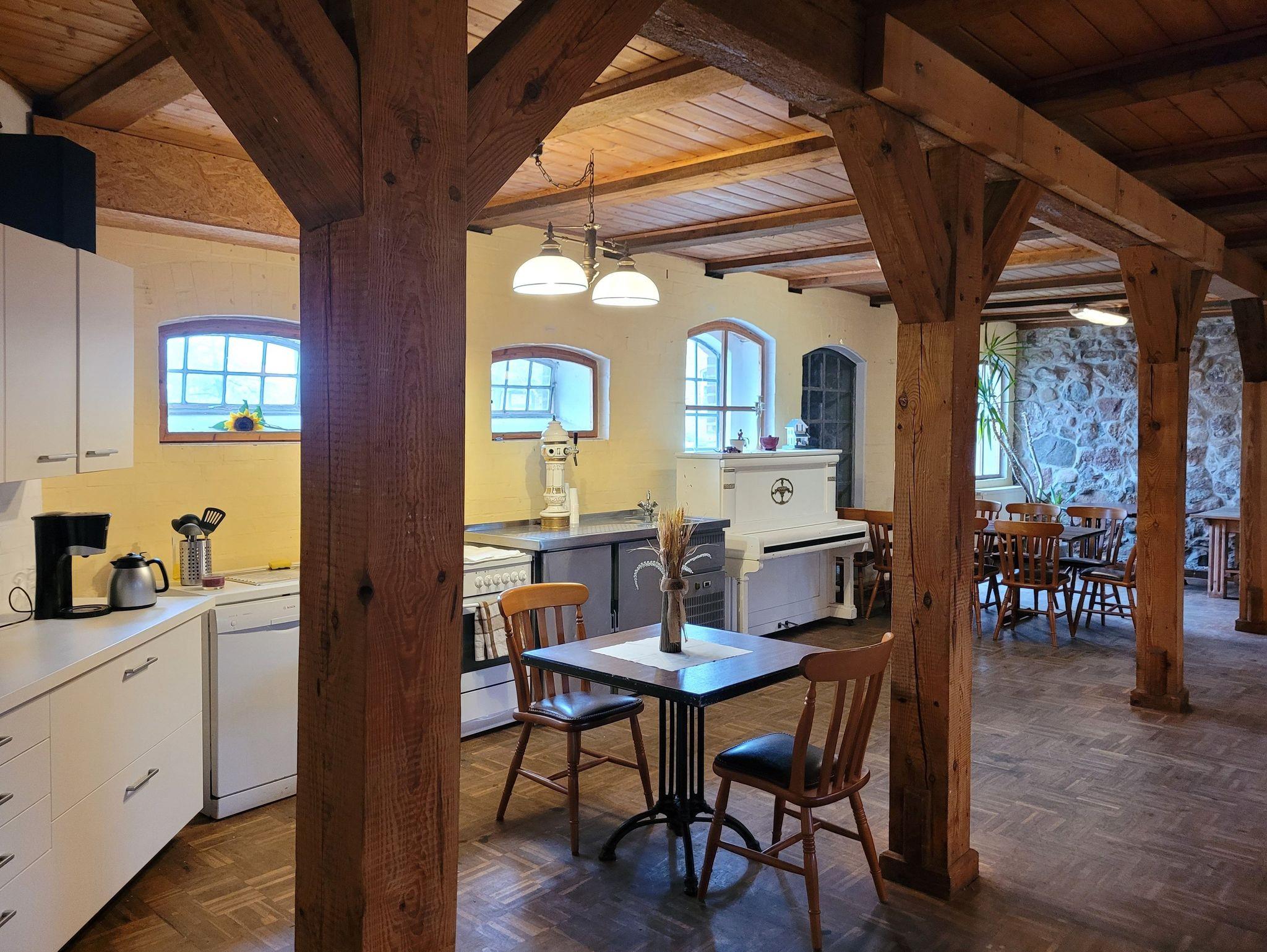 Im Erdgeschloss befindet sich eine voll ausgestattete Gemeinschaftsküche, die von allen Gästen des Hauses genutzt werden kann.